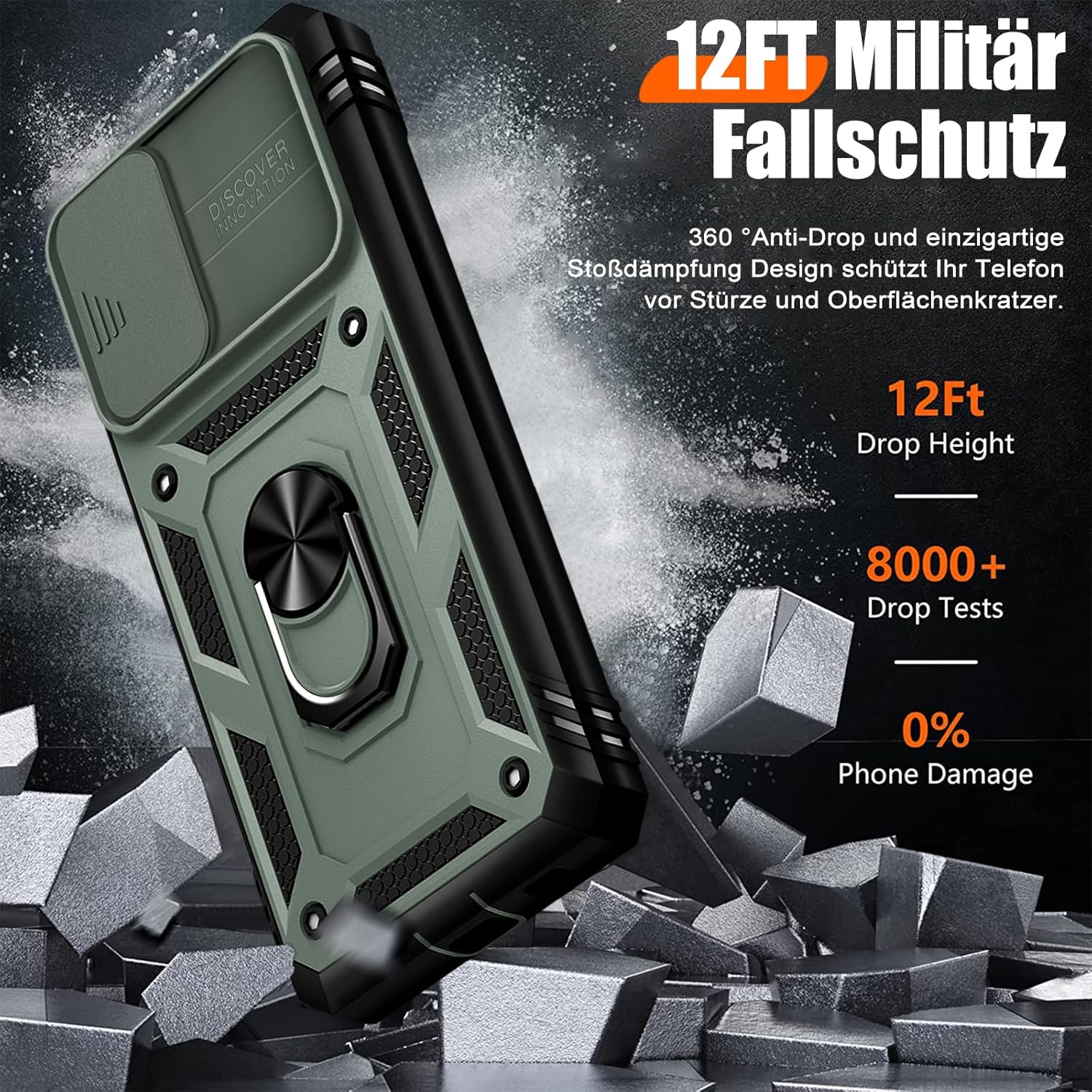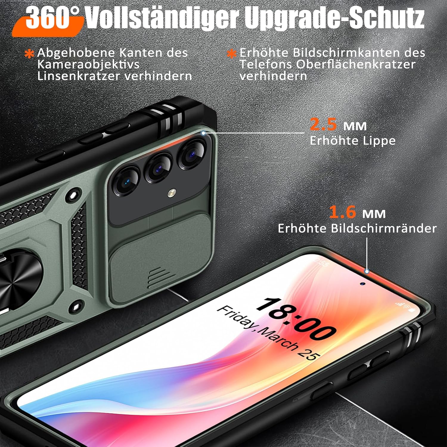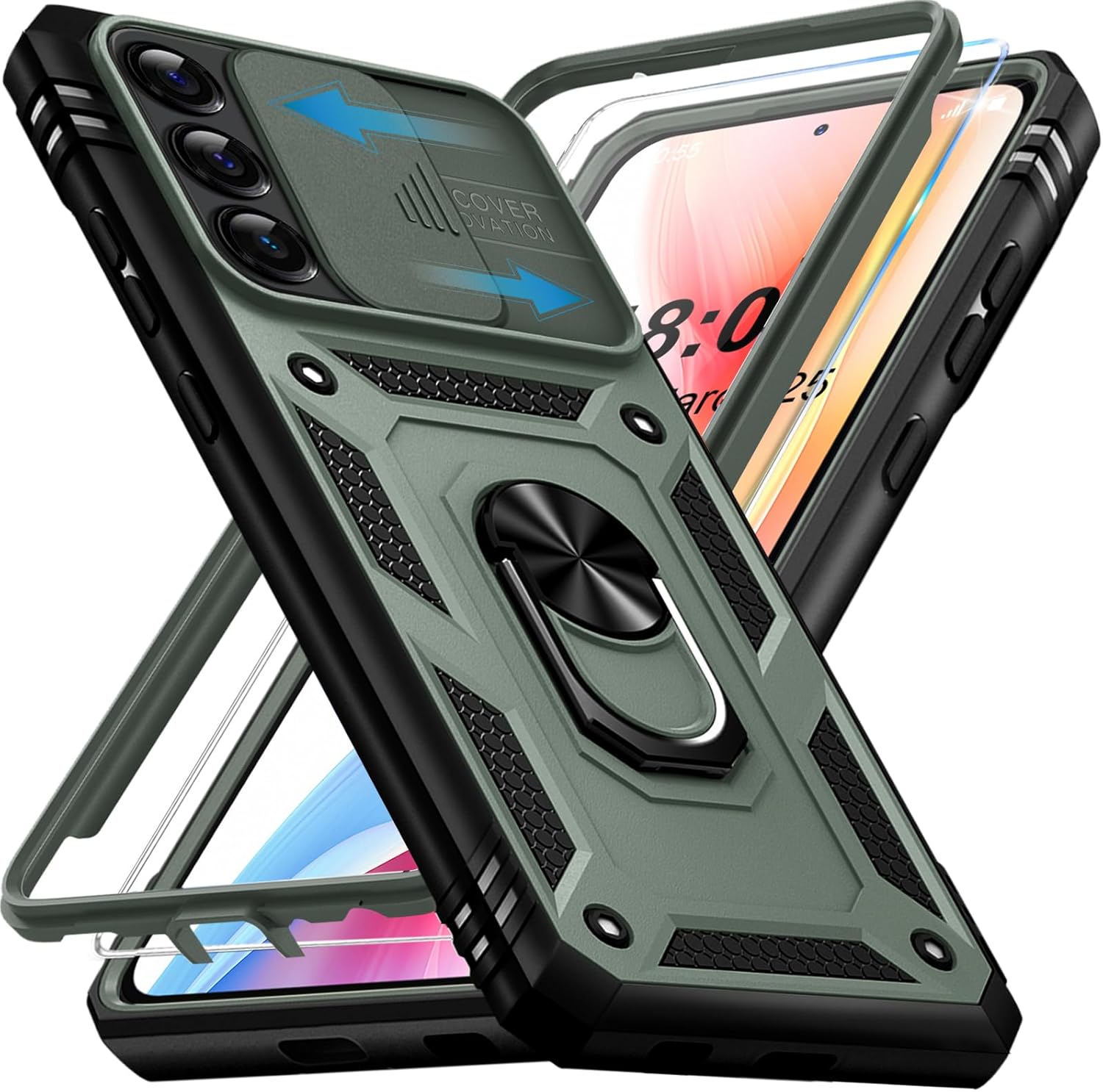 Кейс Giyer за Samsung Galaxy S24 5G с протектор за екрана, Кейс за мобилен телефон S24 5G със защита на камерата, 360° метален пръстен, стойка, удароустойчив, защитен калъф за Samsung S24 (зелен)