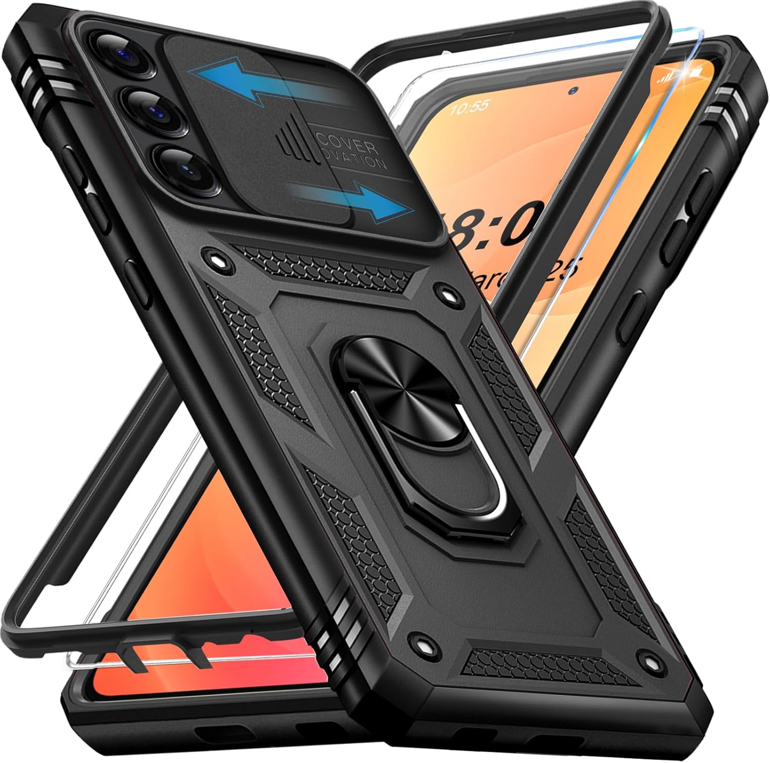 Кейс Giyer за Samsung Galaxy S24 Plus с протектор за екрана, Кейс за мобилен телефон S24 Plus 5G със защита на камерата 360° метален пръстен стойка удароустойчив защитен калъф за Samsung S24 Plus
