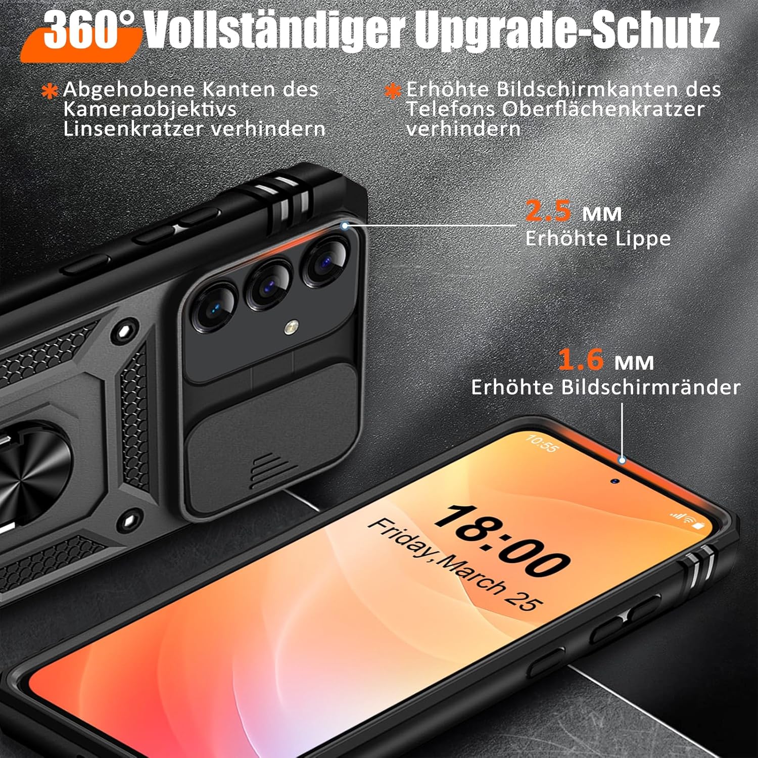 • Защита от военен клас: калъфът за Galaxy S25 използва уникален TPU с ръбове в комбинация с вградени PC 2-в-1 затваряния, за да предпази телефона ви от падания, драскотини и удари. Защитата от военен клас с технология с въздушна възглавница осигурява цялостна защита за вашето оборудване. Дизайн с плъзгач на обектива: Повдигната рамка за защита на камерата. Капачката покрива обектива и го предпазва от прах и драскотини.