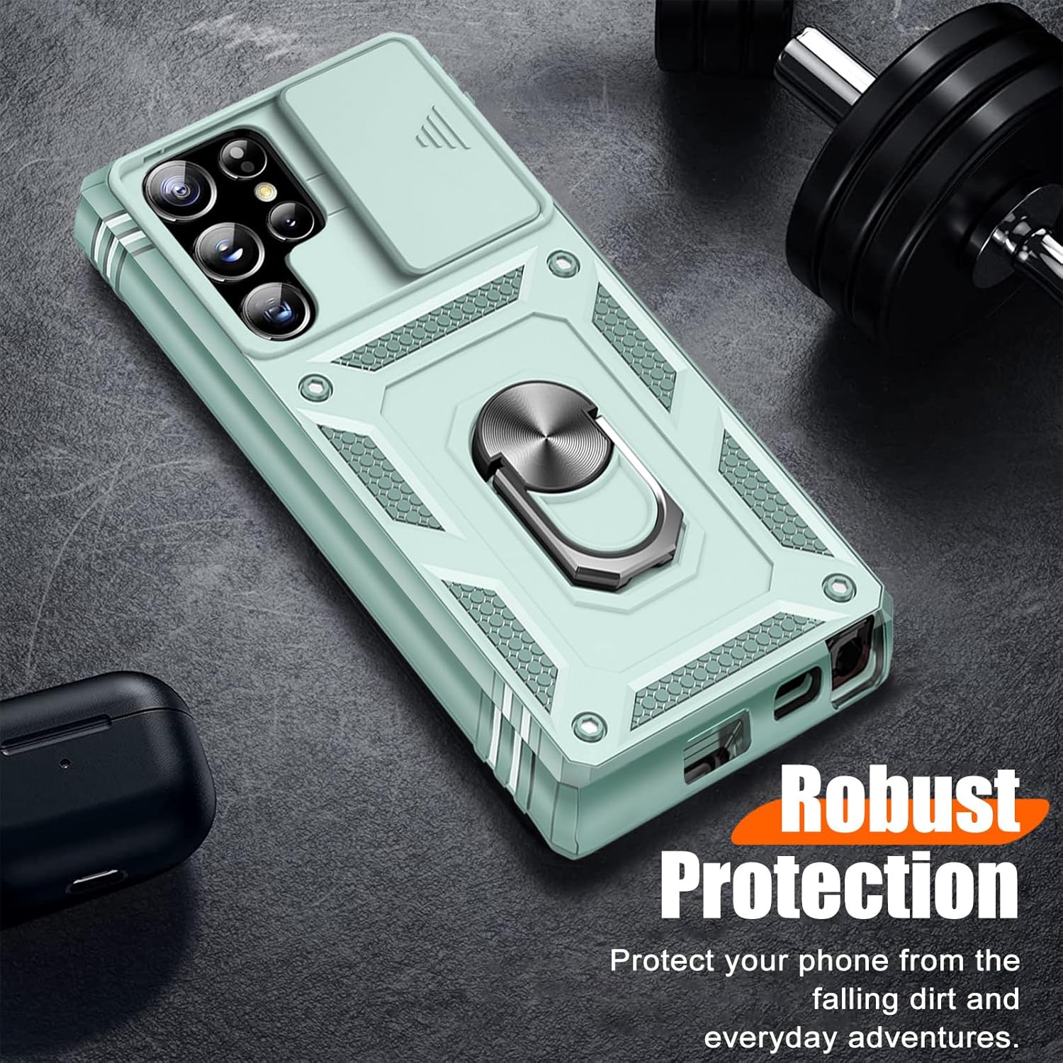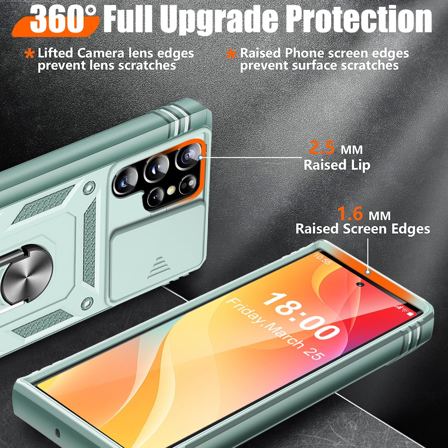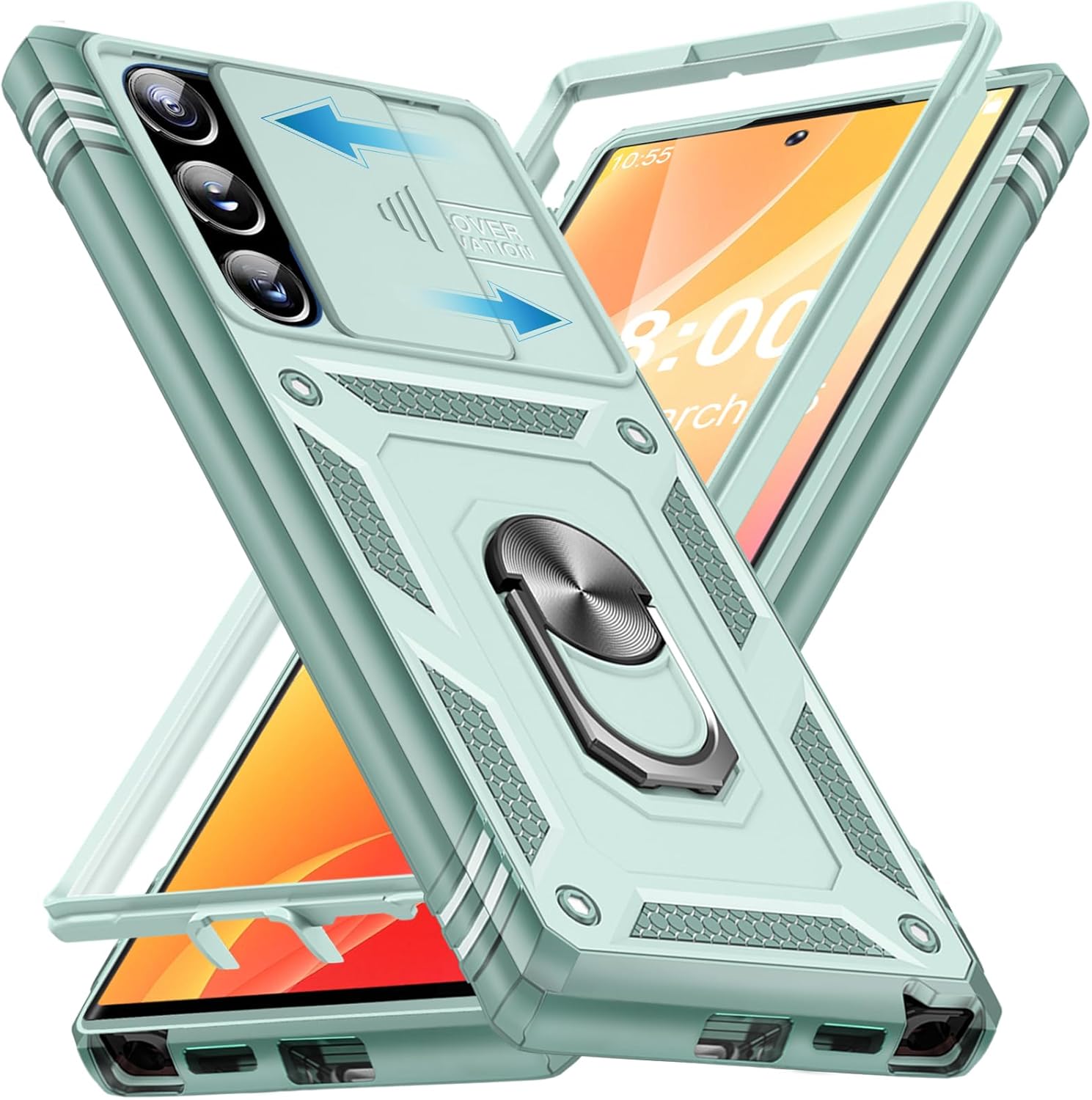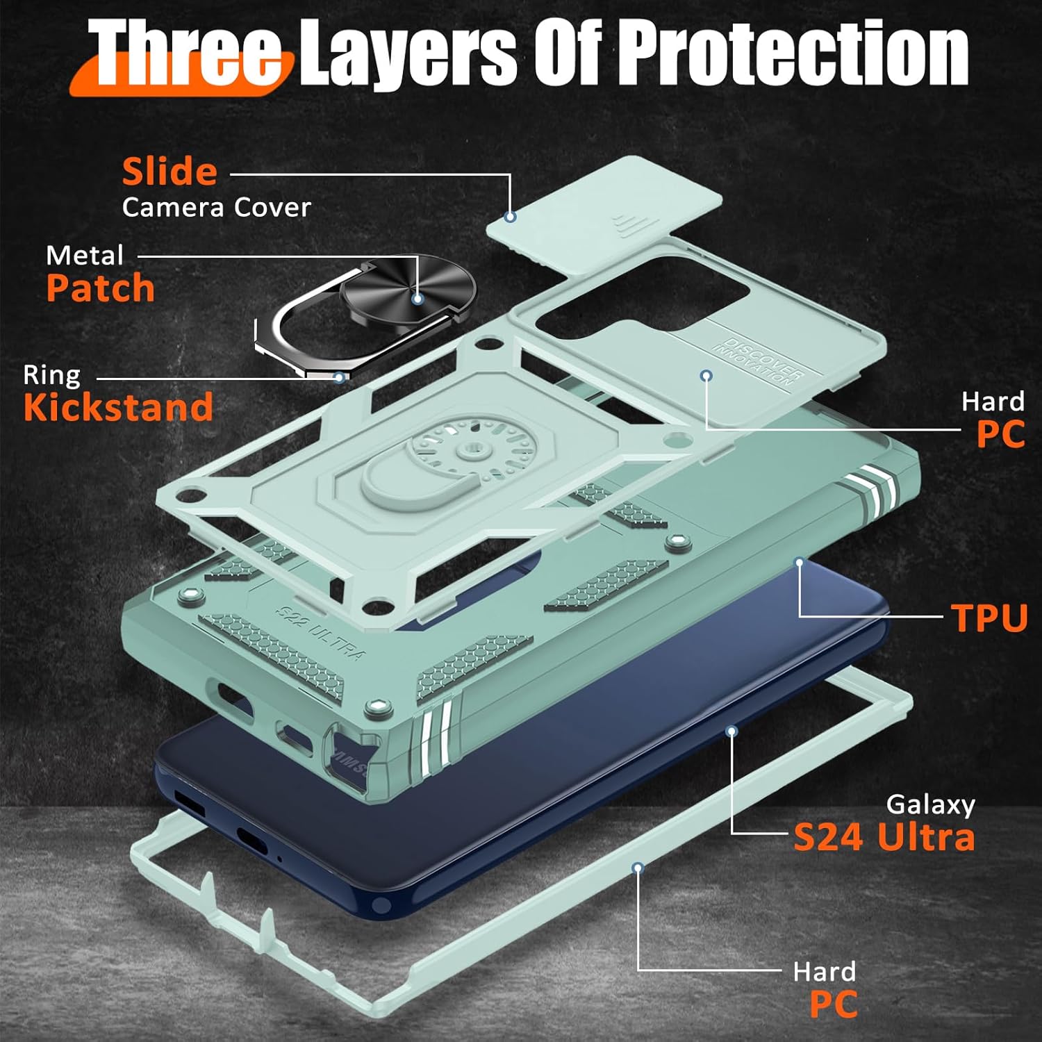 Кейс Giyer за Samsung Galaxy S24 Ultra, Калъф за мобилен телефон S24 Ultra 5G със защита на камерата, 360° метална пръстеновидна стойка, Удароустойчив защитен калъф, Калъф за Samsung S24 Ultra 6.8 инча (Ментов)
