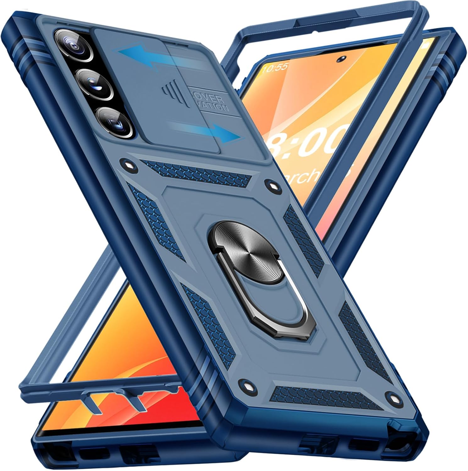 Кейс Giyer за Samsung Galaxy S24 Ultra, Калъф за мобилен телефон S24 Ultra 5G със защита на камерата, 360° метална пръстеновидна стойка, Удароустойчив защитен калъф, Калъф за Samsung S24 Ultra 6.8 инча (син)
