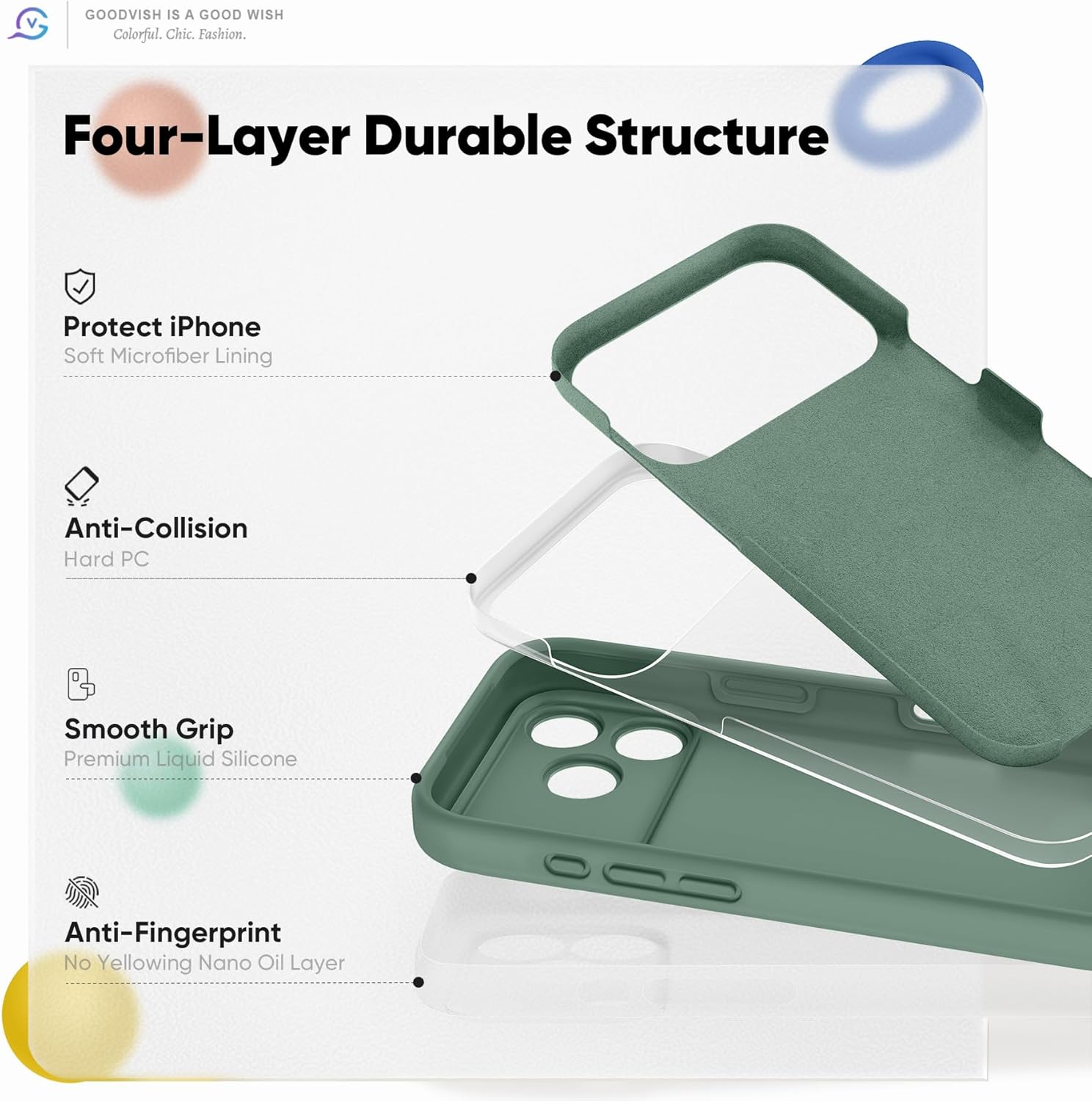 Кейс GOODVISH за iPhone 17 Pro с бутон за управление на камерата, с 2 части защитно фолио от силикон, защита на камерата от мека микрофибърна подплата, калъф за мобилен телефон, удароустойчив 360° защитен калъф 6.3