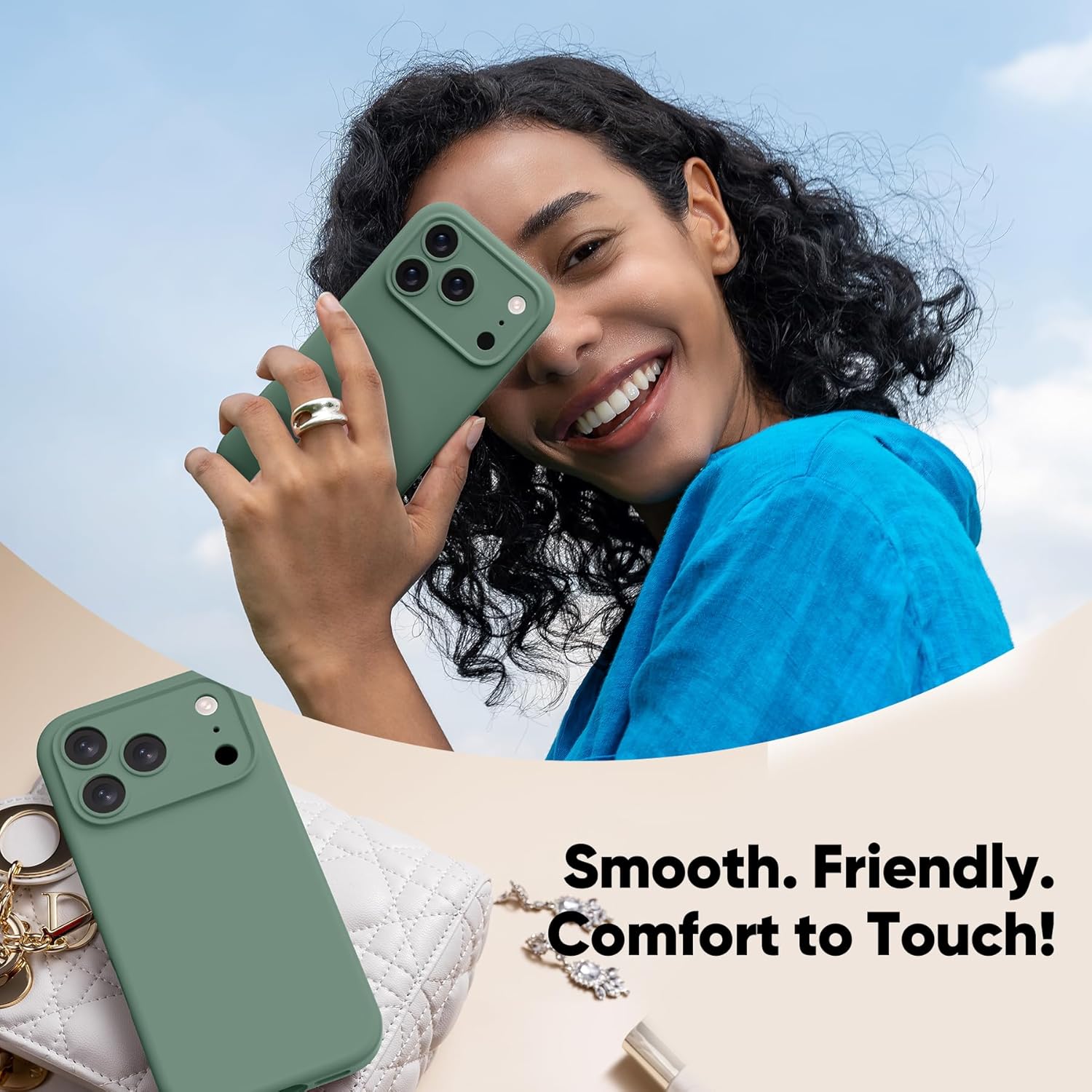 • Висококачествен течен силикон. Кейсът за iPhone 17 Pro е изработен от висококачествен силиконов материал, който е мек и еластичен, копринен на допир, осигурява отлично сцепление, намалява риска от падане и осигурява силна защита в случай на инцидент. На гърба е нанесен нов нано олеофобен незалепващ слой, който предотвратява залепването на пръстови отпечатъци, мазнини и коса на 99%.