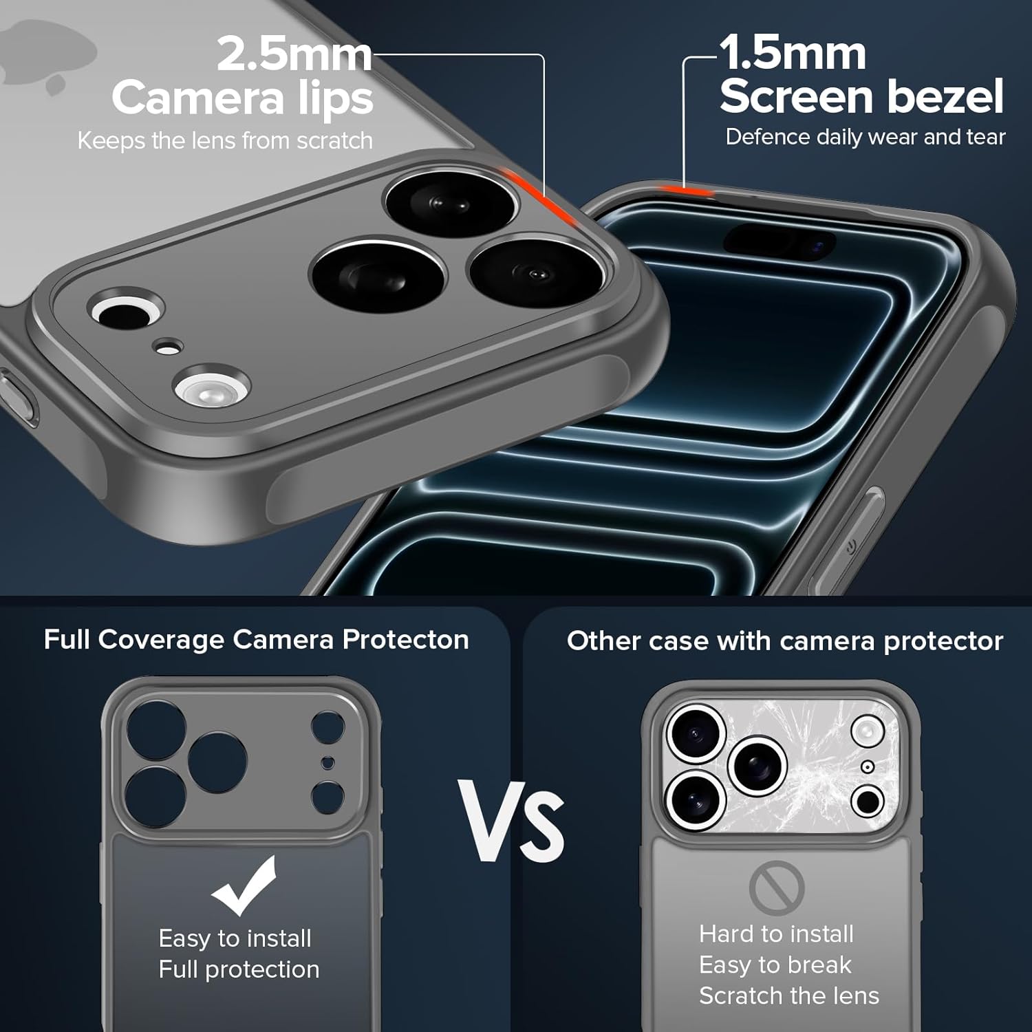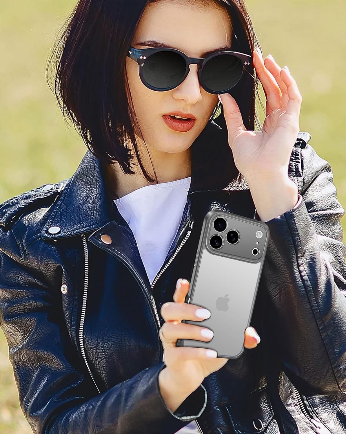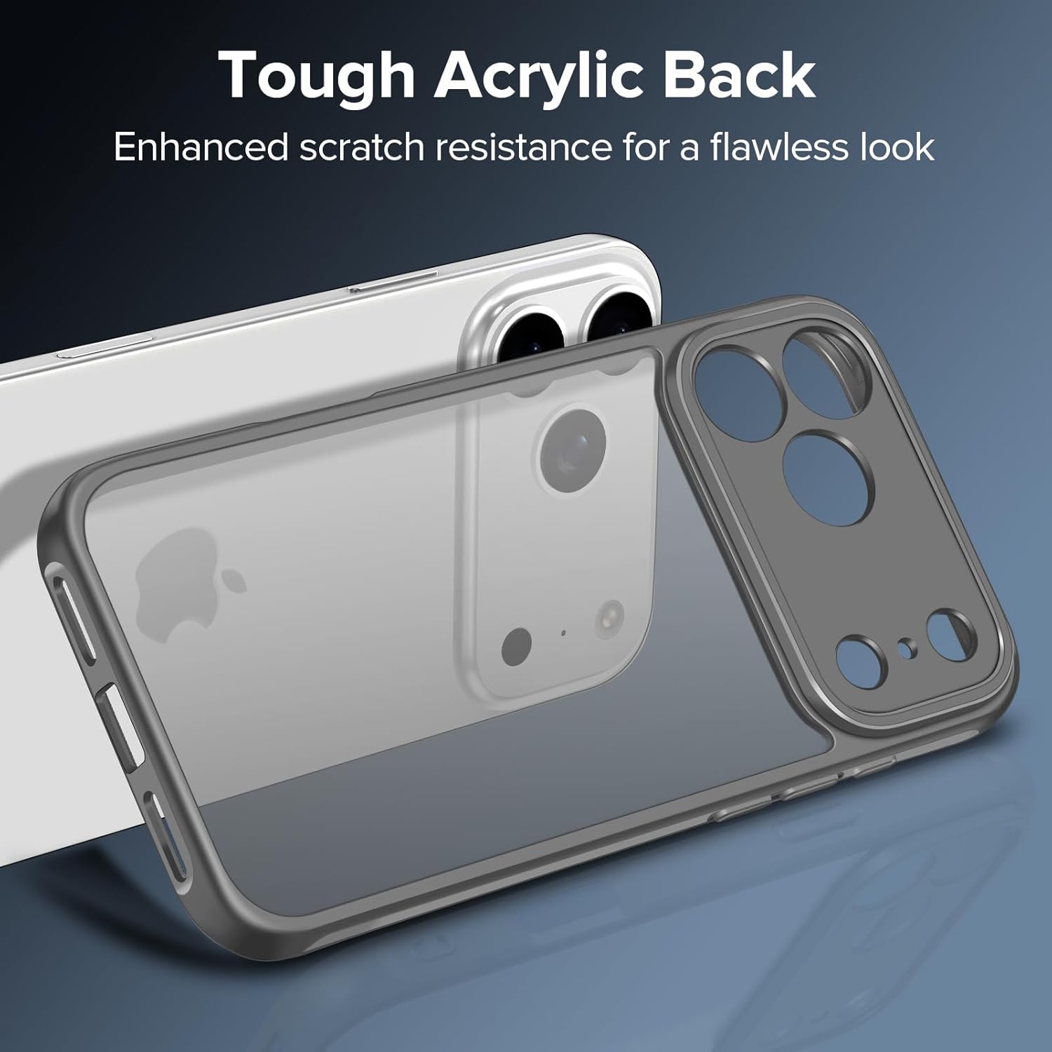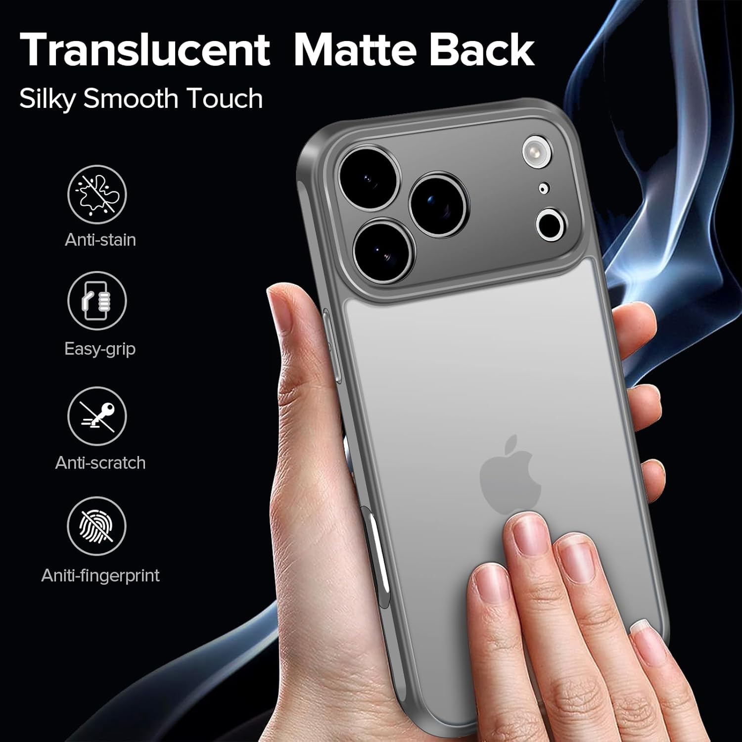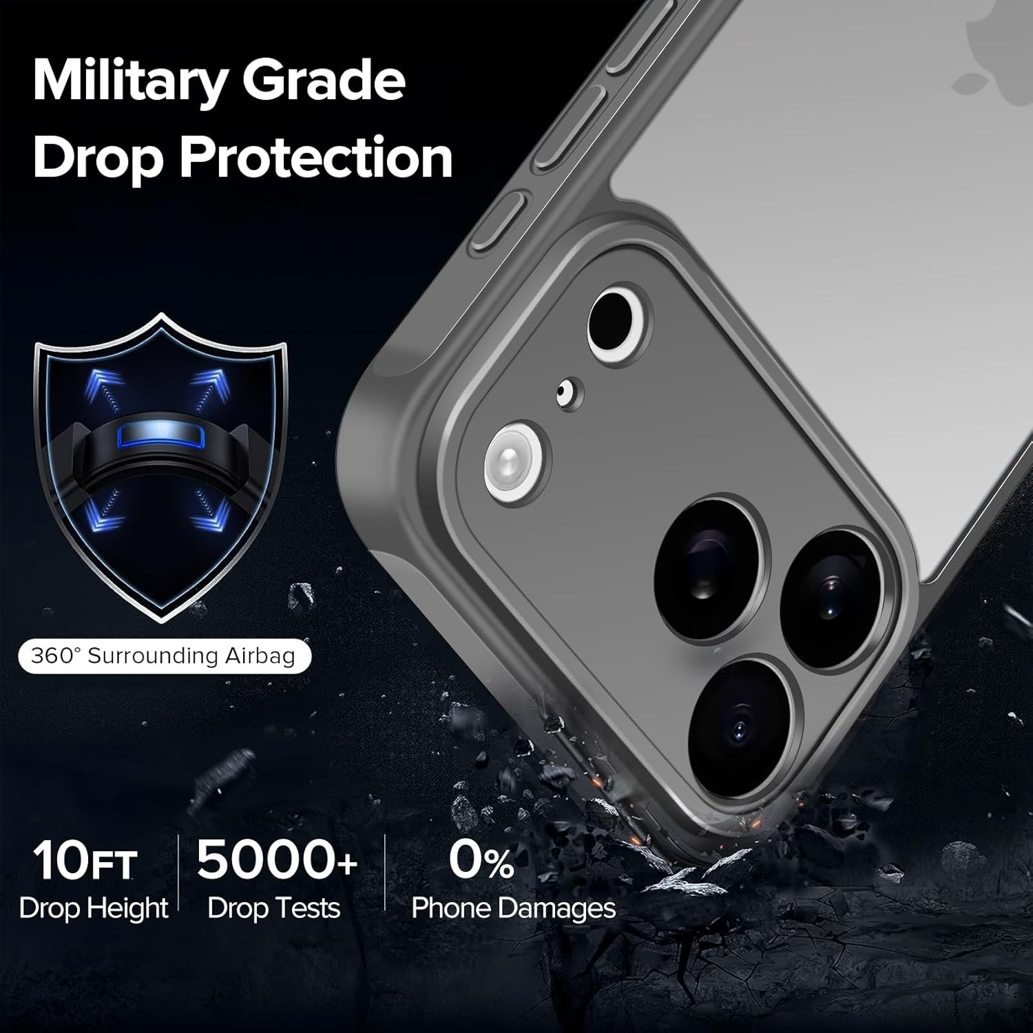 Кейс ivoler за iPhone 17 Pro Max с 2 части защита от закалено стъкло, военен стандарт, удароустойчив, защита на камерата, калъф за мобилен телефон, матов, прозрачен гръб, защита срещу пръстови отпечатъци, сив