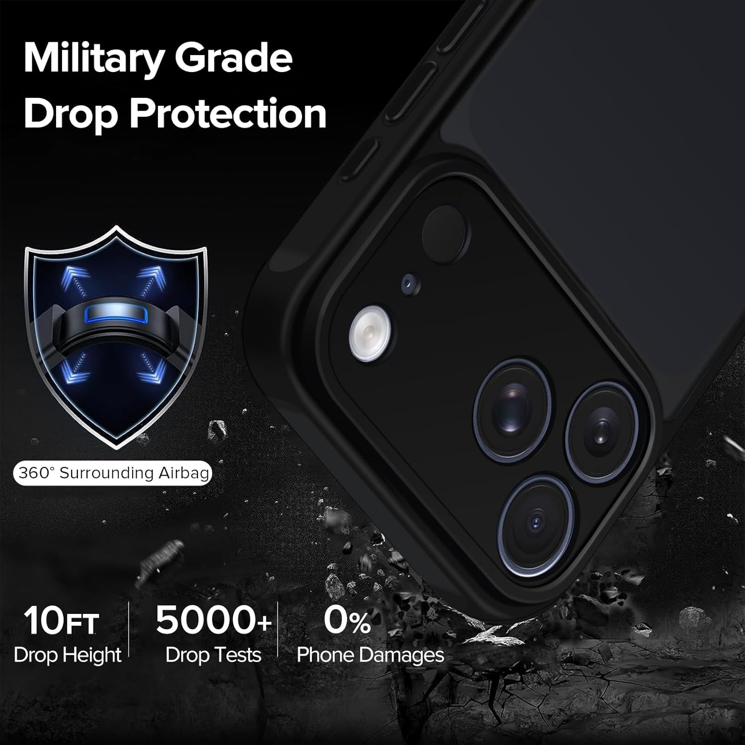 Кейс ivoler за iPhone 17 Pro с 2 части защита от закалено стъкло, военен стандарт, удароустойчив, защита на камерата, калъф за мобилен телефон, матов, прозрачен гръб, защита срещу пръстови отпечатъци, черен