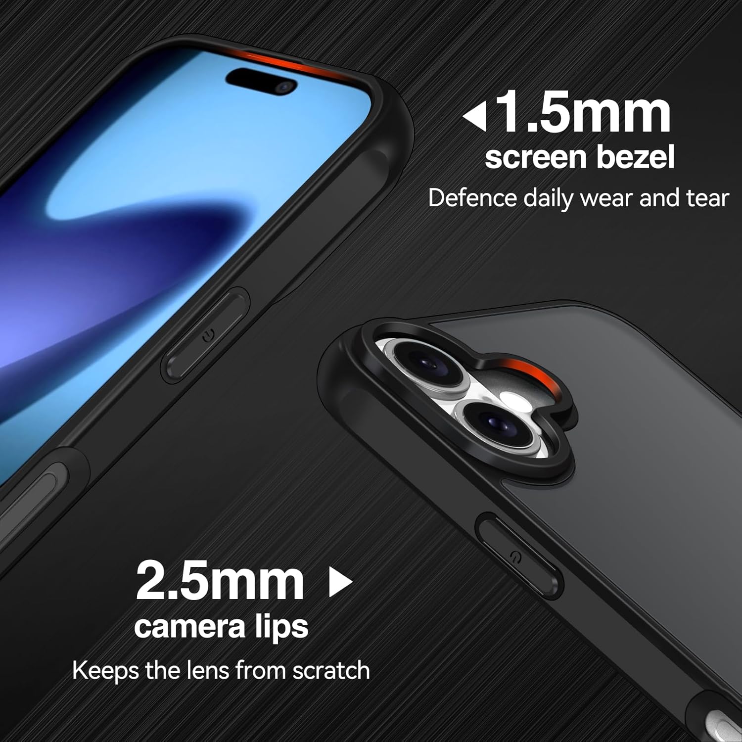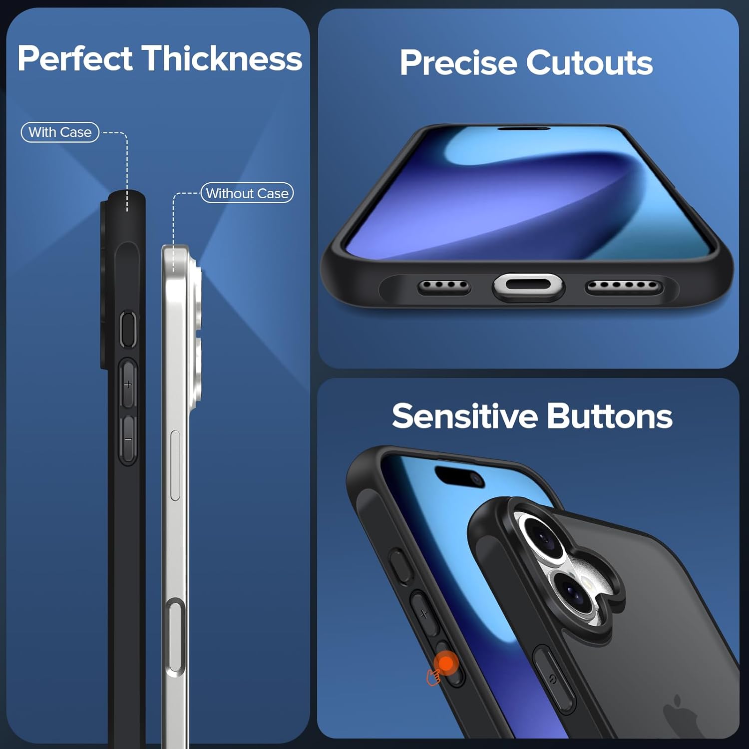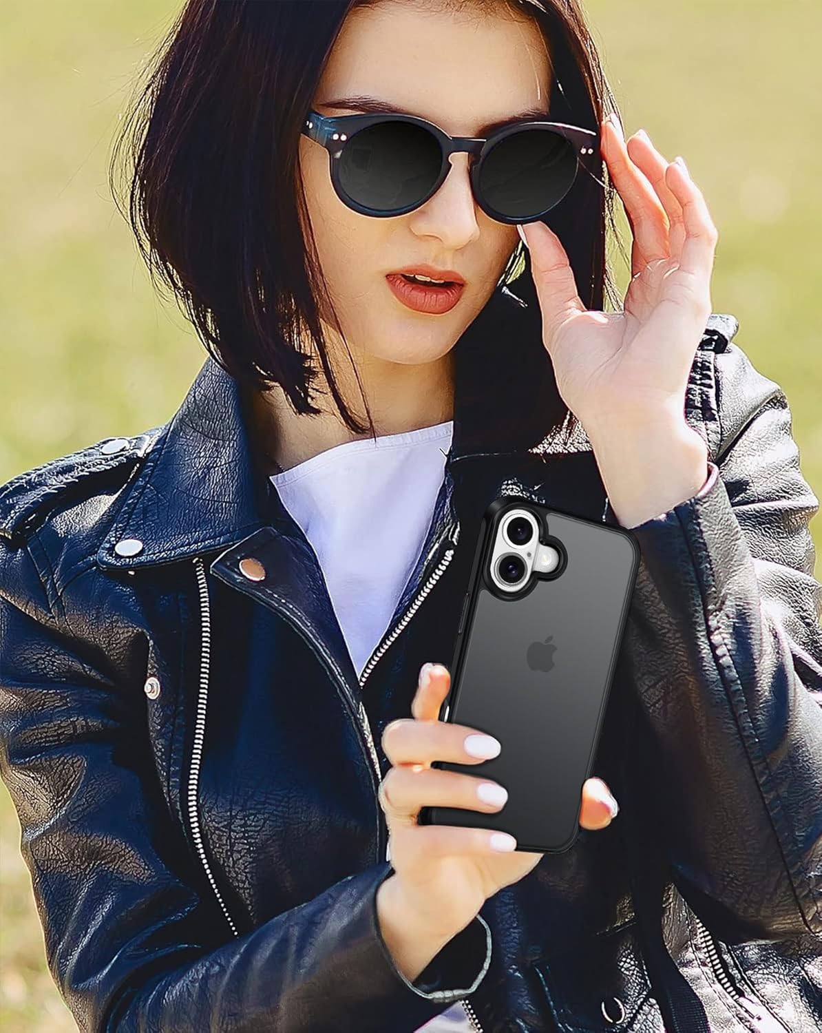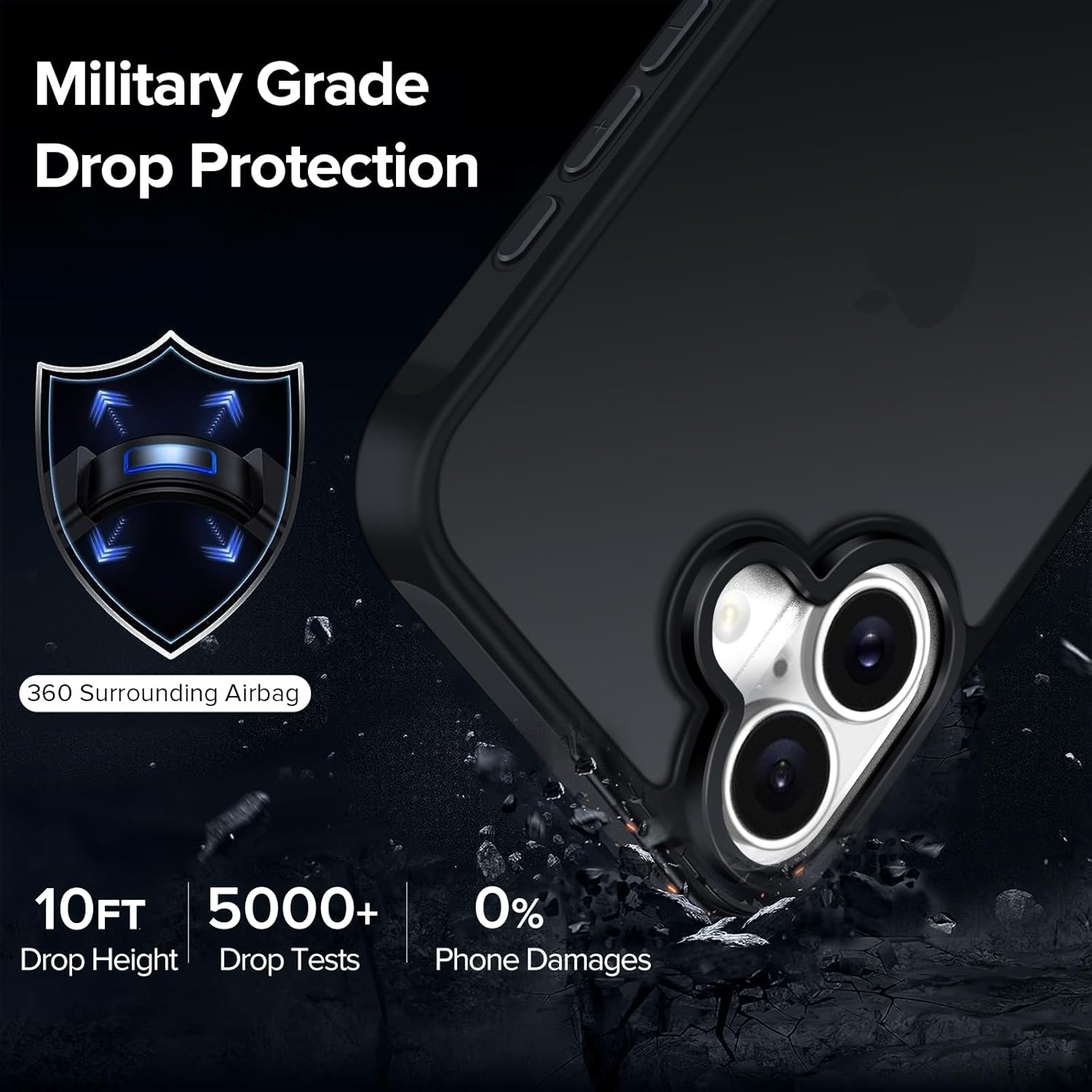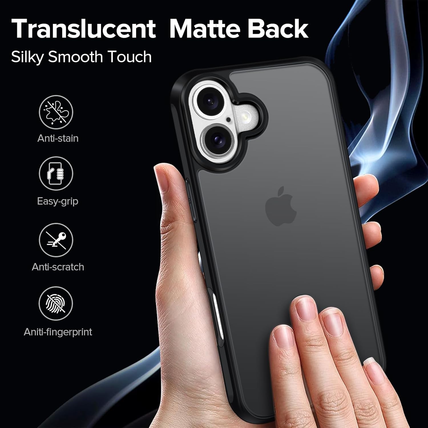Кейс ivoler за iPhone 17 с 2 части закалено стъкло [Военен стандарт] Удароустойчив [Защита на камерата] Калъф за мобилен телефон, матов прозрачен гръб, защитен калъф против пръстови отпечатъци, черен