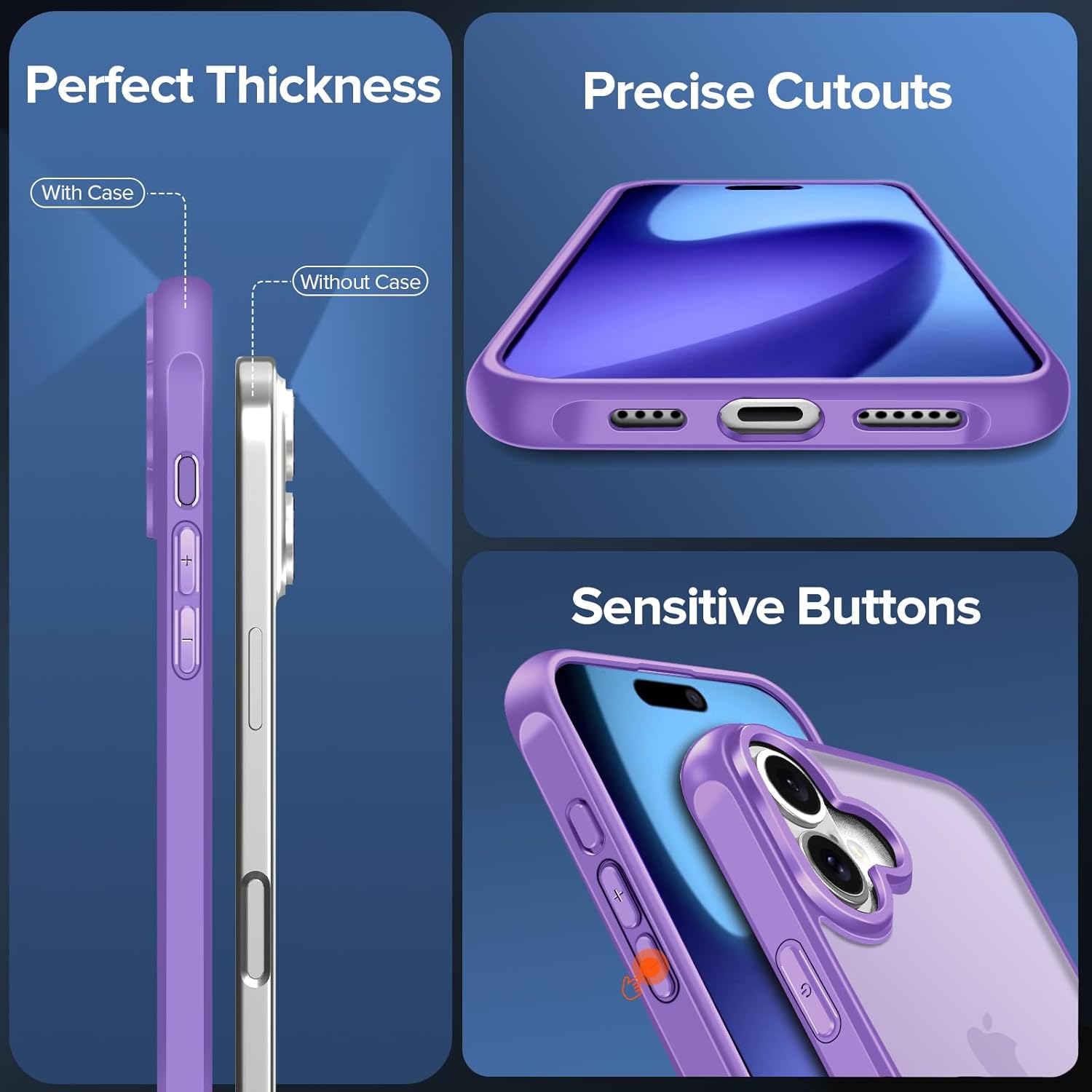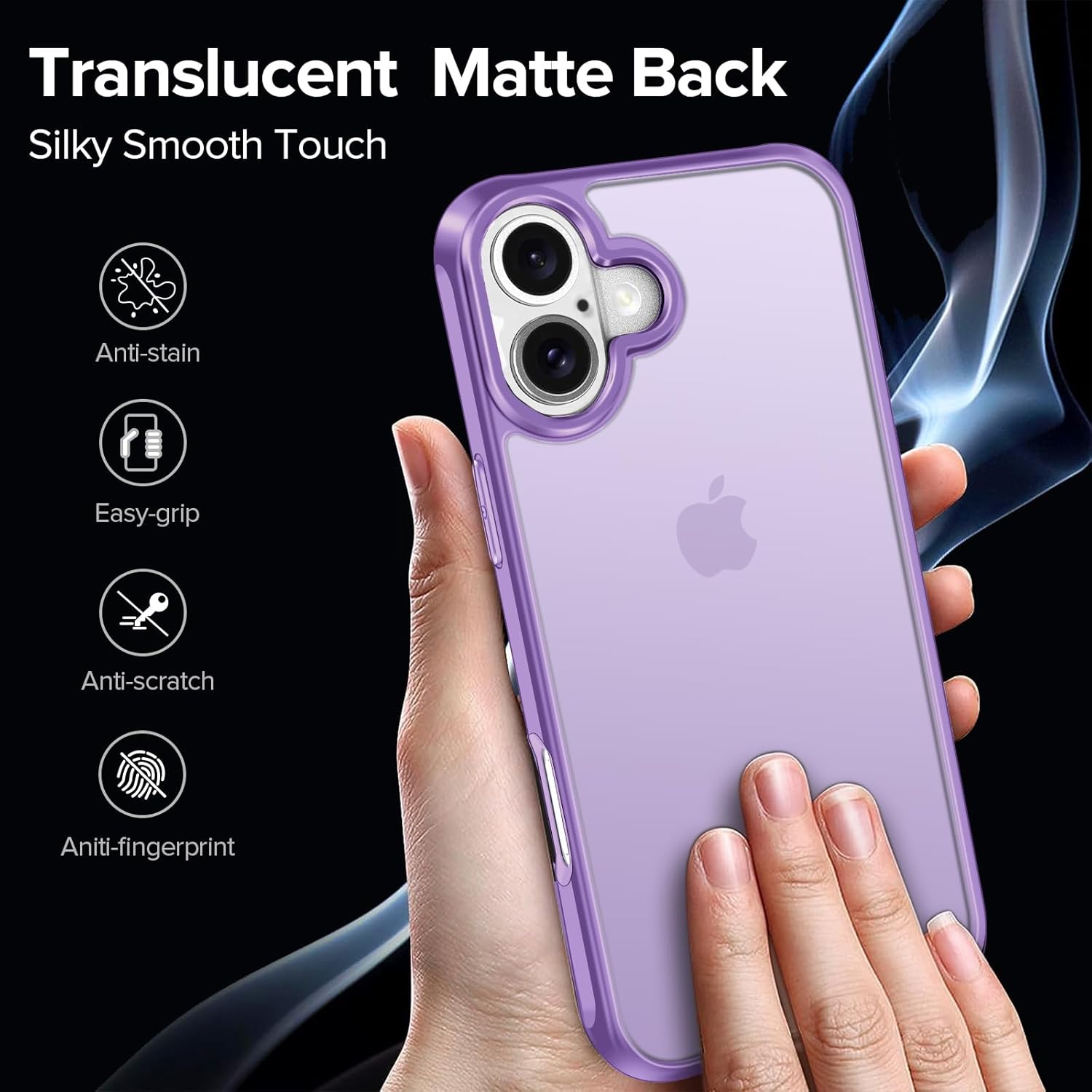 Кейс ivoler за iPhone 17 с 2 части закалено стъкло [Военен стандарт] Удароустойчив [Защита на камерата] Калъф за мобилен телефон, матов прозрачен гръб, защитен калъф против пръстови отпечатъци, лек