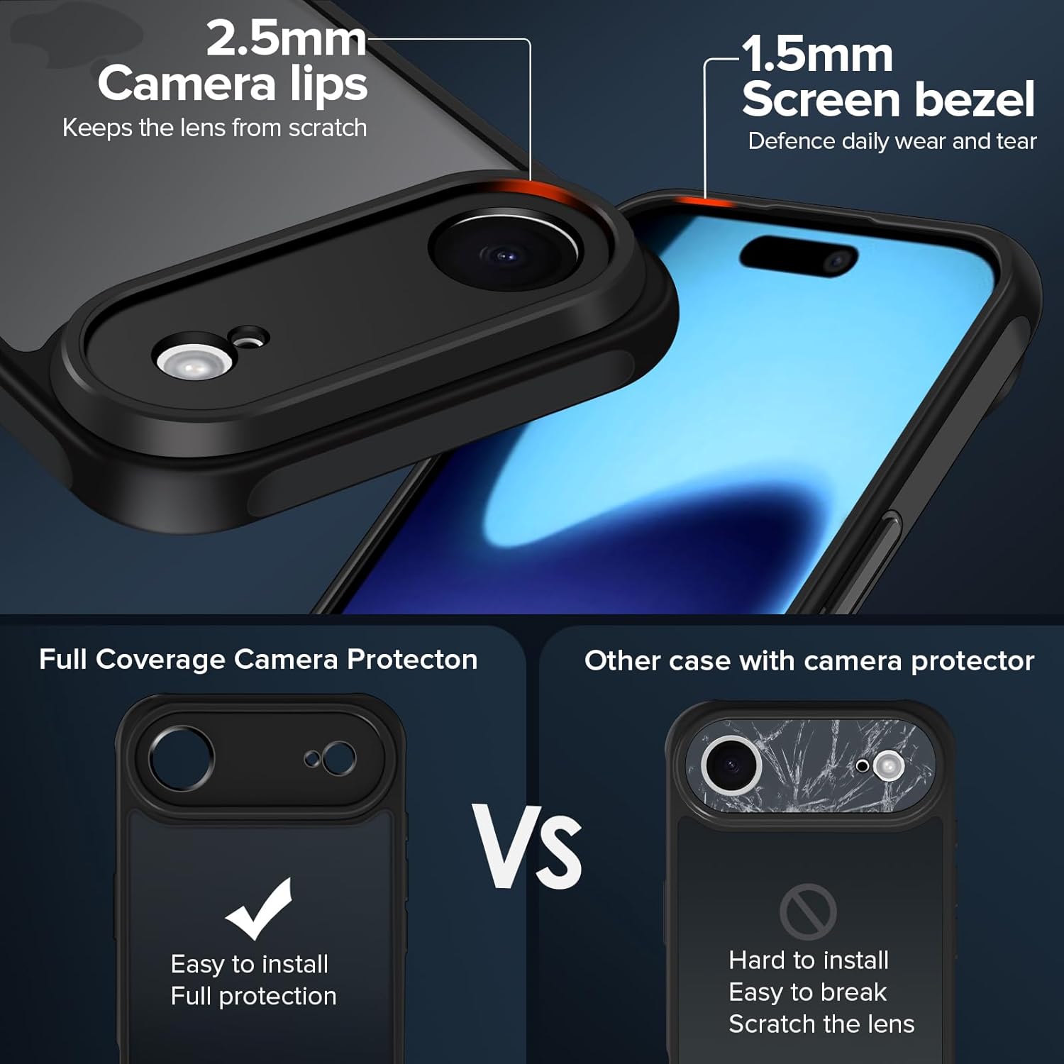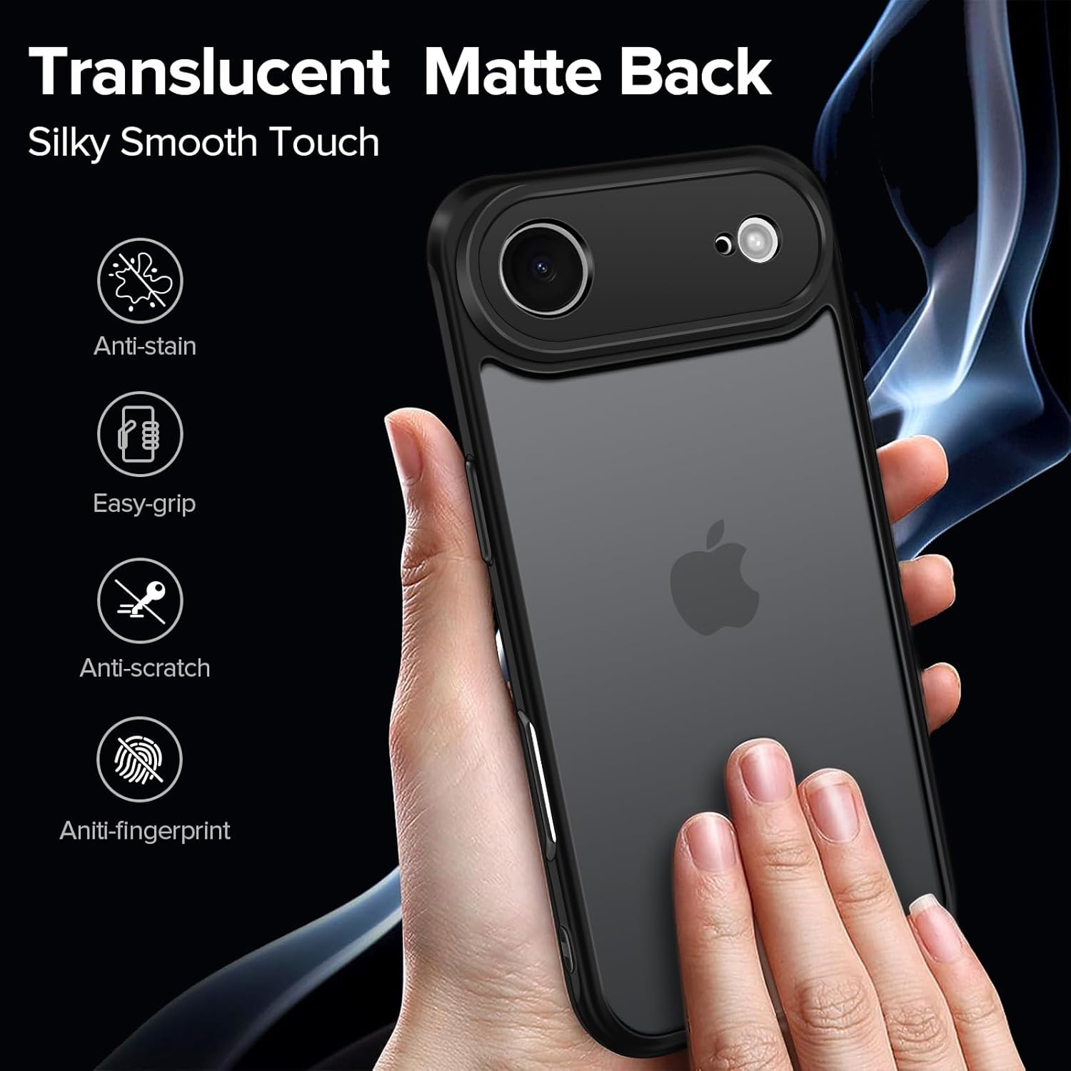 Кейс ivoler за iPhone Air с 2 части закалено стъкло [Военен стандарт] Удароустойчив [Защита на камерата] Калъф за мобилен телефон, матов прозрачен гръб със защита против пръстови отпечатъци, черен