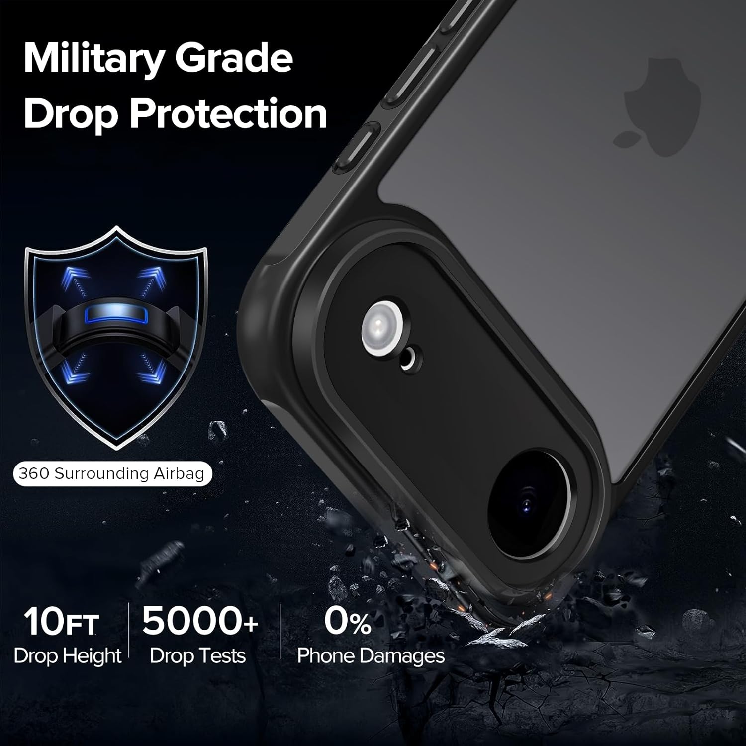 • Отлична защита от военно ниво: твърда PC задна плоча обгражда мека TPU броня с абсорбиращи ударите „въздушни възглавници“ в 4 ъгъла, които могат ефективно да абсорбират и разпределят 99,99% от удара при падане. Тестван да издържа на реални ситуации, включително тестове за падане от множество ъгли от 3 метра и екстремни надрасквания. Така телефонът ви е защитен от скъпи и досадни ремонти.