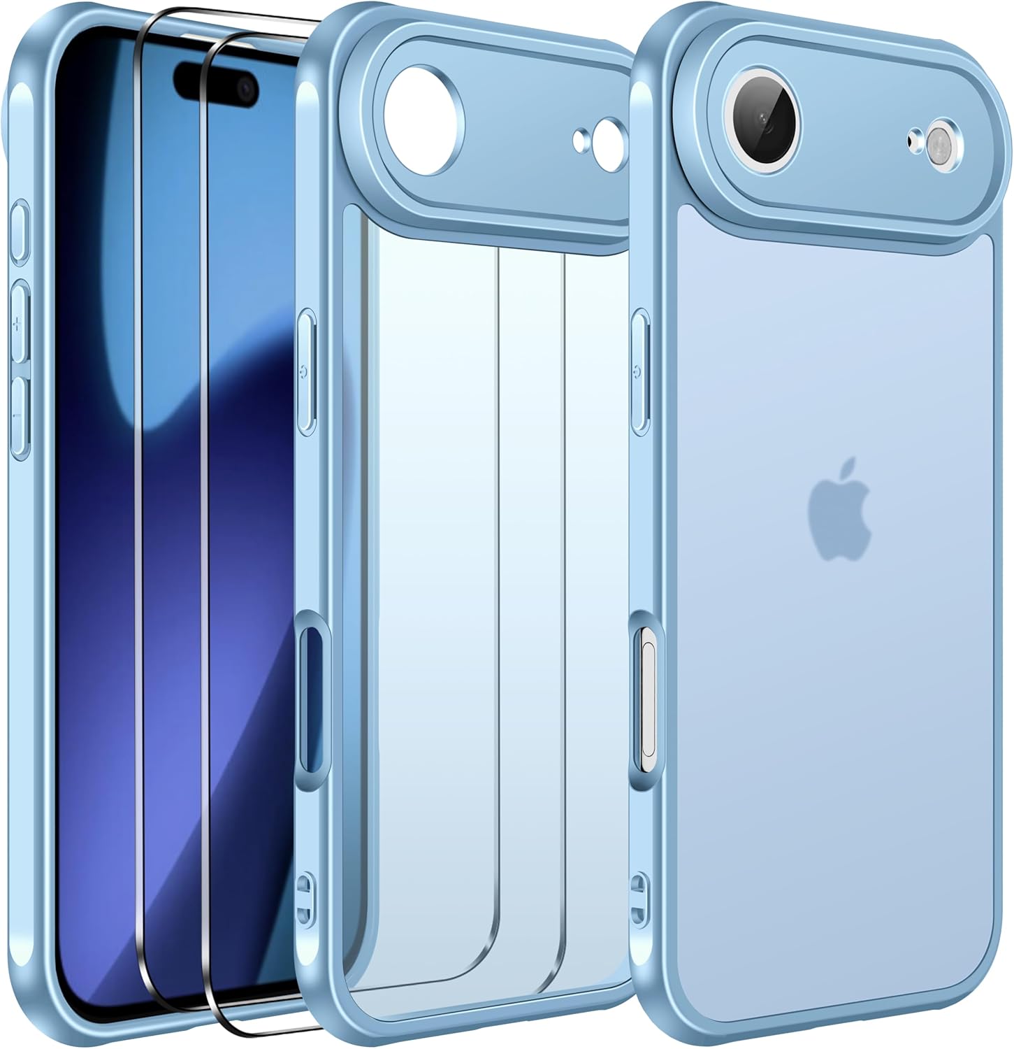 Кейс ivoler за iPhone Air с 2 части закалено стъкло [Военен стандарт] Удароустойчив [Защита на камерата] Калъф за мобилен телефон, матов прозрачен гръб, защитен калъф против пръстови отпечатъци, лек