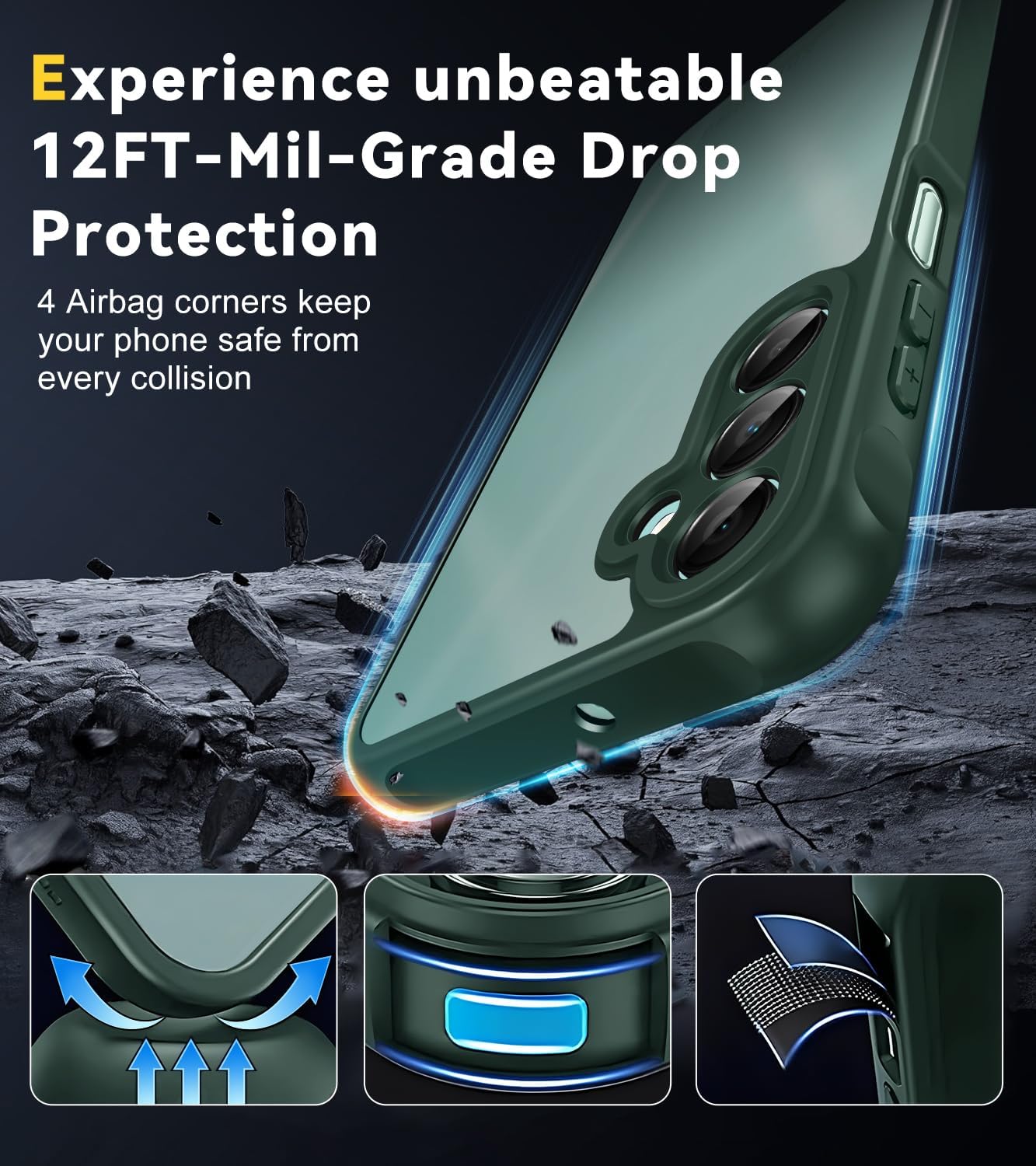• 【Отлична защита от военно ниво】Твърдата PC задна плоча обгражда мека TPU броня с абсорбиращи ударите "въздушни възглавници" в 4 ъгъла, които могат ефективно да абсорбират и разпределят 99,99% от удара при падане. Тестван да издържа на реални ситуации, включително тестове за падане от множество ъгли от 3 метра и екстремни надрасквания. Така телефонът ви е защитен от скъпи и досадни ремонти.