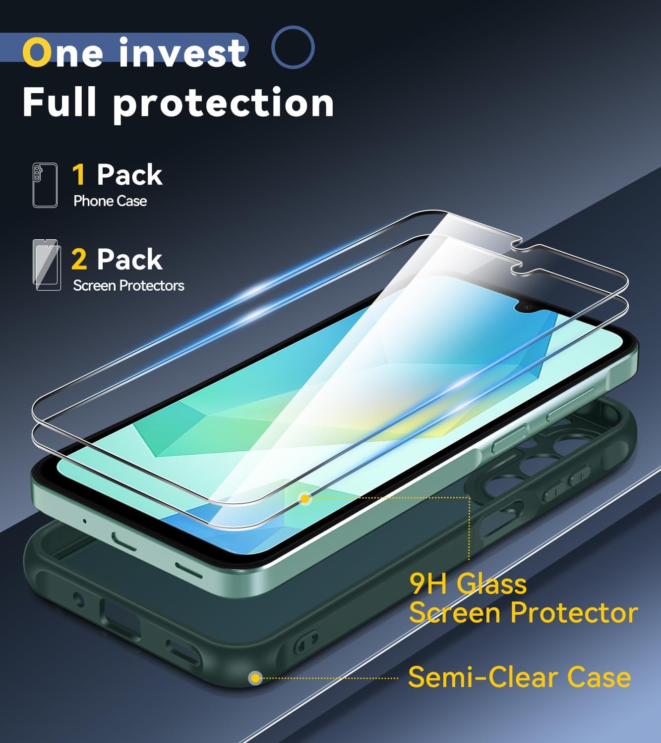 Кейс ivoler за Samsung Galaxy A16 4G / 5G с 2 части защита от закалено стъкло, военен стандарт, удароустойчив, защита на камерата, калъф за мобилен телефон, матов прозрачен гръб, защита срещу пръстови отпечатъци