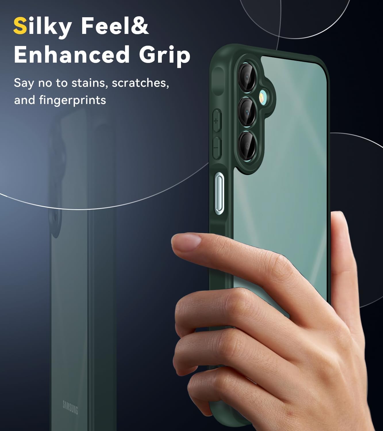 • 【Специален дизайн】Проектиран с текстура от въглеродни влакна и матирана противоплъзгаща повърхност, той е удобен в ръката ви и помага за намаляване на натрупването на пръстови отпечатъци или мазнини, предотвратява петна от вода, пръстови отпечатъци и размазване, за да поддържа калъфа на телефона ви чист и подреден. Също така увеличава сцеплението и предотвратява изплъзването на телефона ви от ръката ви. Лесен за поставяне и сваляне и е против надраскване на телефона, материалът не се поврежда лесно.