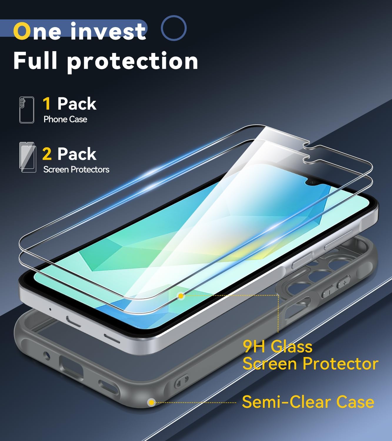 Кейс ivoler за Samsung Galaxy A16 4G / 5G с 2 части защита от закалено стъкло, военен стандарт, удароустойчив, защита на камерата, калъф за мобилен телефон, матов прозрачен гръб, защита срещу пръстови отпечатъци