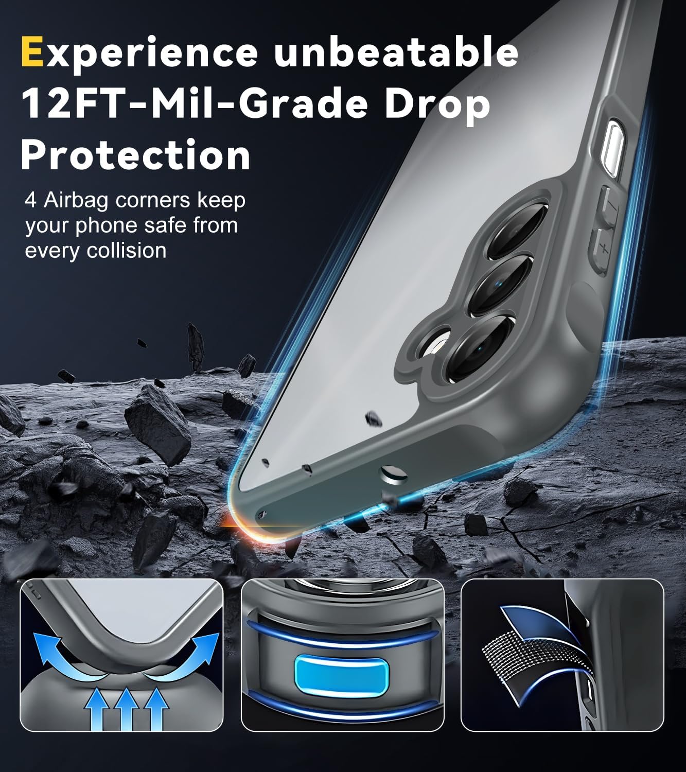 • 【Отлична защита от военно ниво】Твърдата PC задна плоча обгражда мека TPU броня с абсорбиращи ударите "въздушни възглавници" в 4 ъгъла, които могат ефективно да абсорбират и разпределят 99,99% от удара при падане. Тестван да издържа на реални ситуации, включително тестове за падане от множество ъгли от 3 метра и екстремни надрасквания. Така телефонът ви е защитен от скъпи и досадни ремонти.