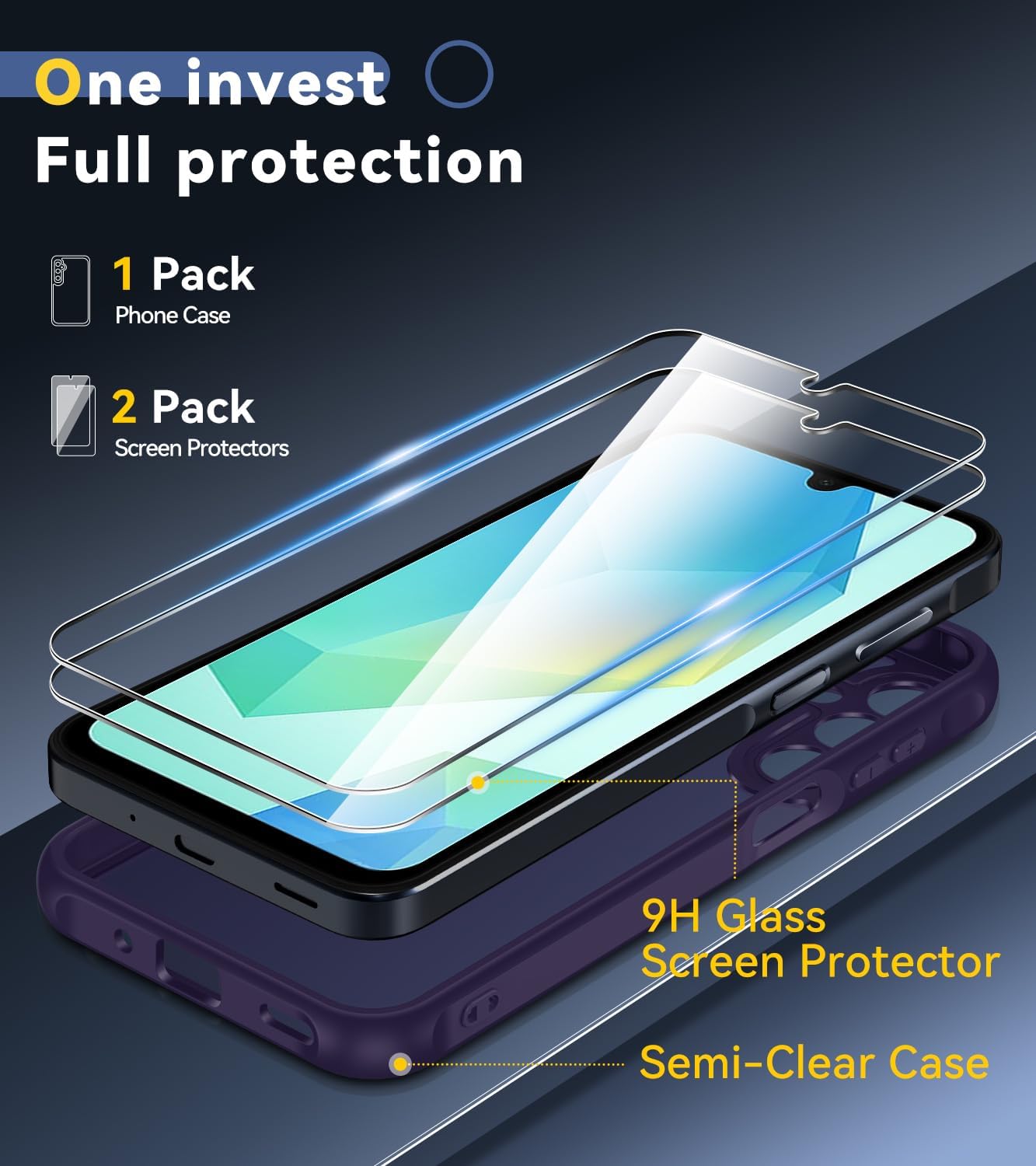 Кейс ivoler за Samsung Galaxy A16 4G / A16 5G с 2 части закалено стъкло [военен стандарт], удароустойчив [защита на камерата], калъф за мобилен телефон, матов, прозрачен, против пръстови отпечатъци