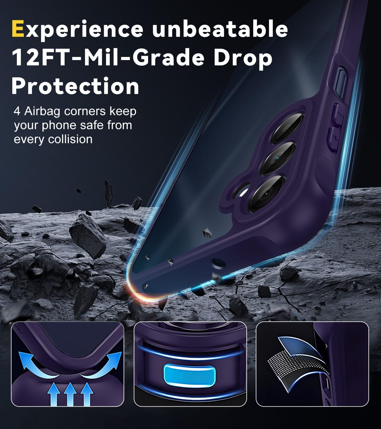 • 【Отлична защита от военно ниво】Твърдата PC задна плоча обгражда мека TPU броня с абсорбиращи ударите "въздушни възглавници" в 4 ъгъла, които могат ефективно да абсорбират и разпределят 99,99% от удара при падане. Тестван да издържа на реални ситуации, включително тестове за падане от множество ъгли от 3 метра и екстремни надрасквания. Така телефонът ви е защитен от скъпи и досадни ремонти.