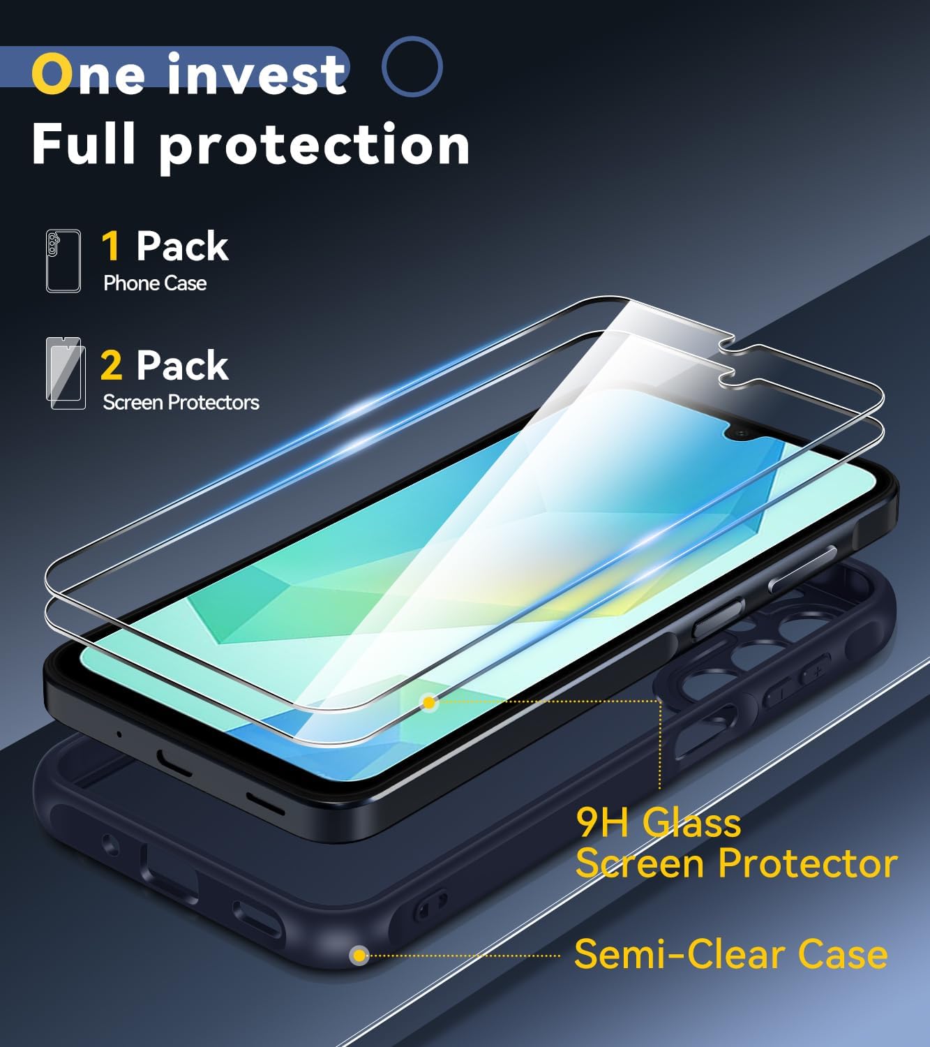 Кейс ivoler за Samsung Galaxy A16 4G / A16 5G с 2 части закалено защитно стъкло, [военен стандарт] удароустойчив [защита на камерата] калъф за мобилен телефон, матов прозрачен, против пръстови отпечатъци