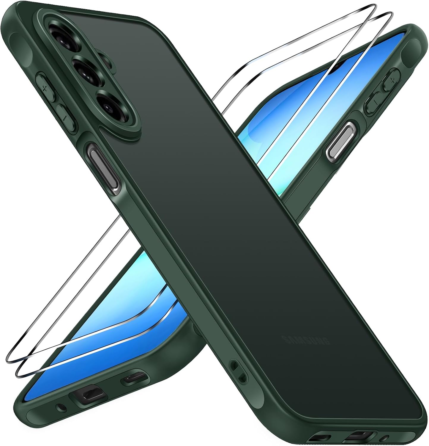 Кейс ivoler за Samsung Galaxy A17 4G / 5G с 2 части закалено стъкло, защитно стъкло, военен стандарт, удароустойчив, устойчив на надраскване, калъф за мобилен телефон, матов, прозрачен гръб, против пръстови отпечатъци