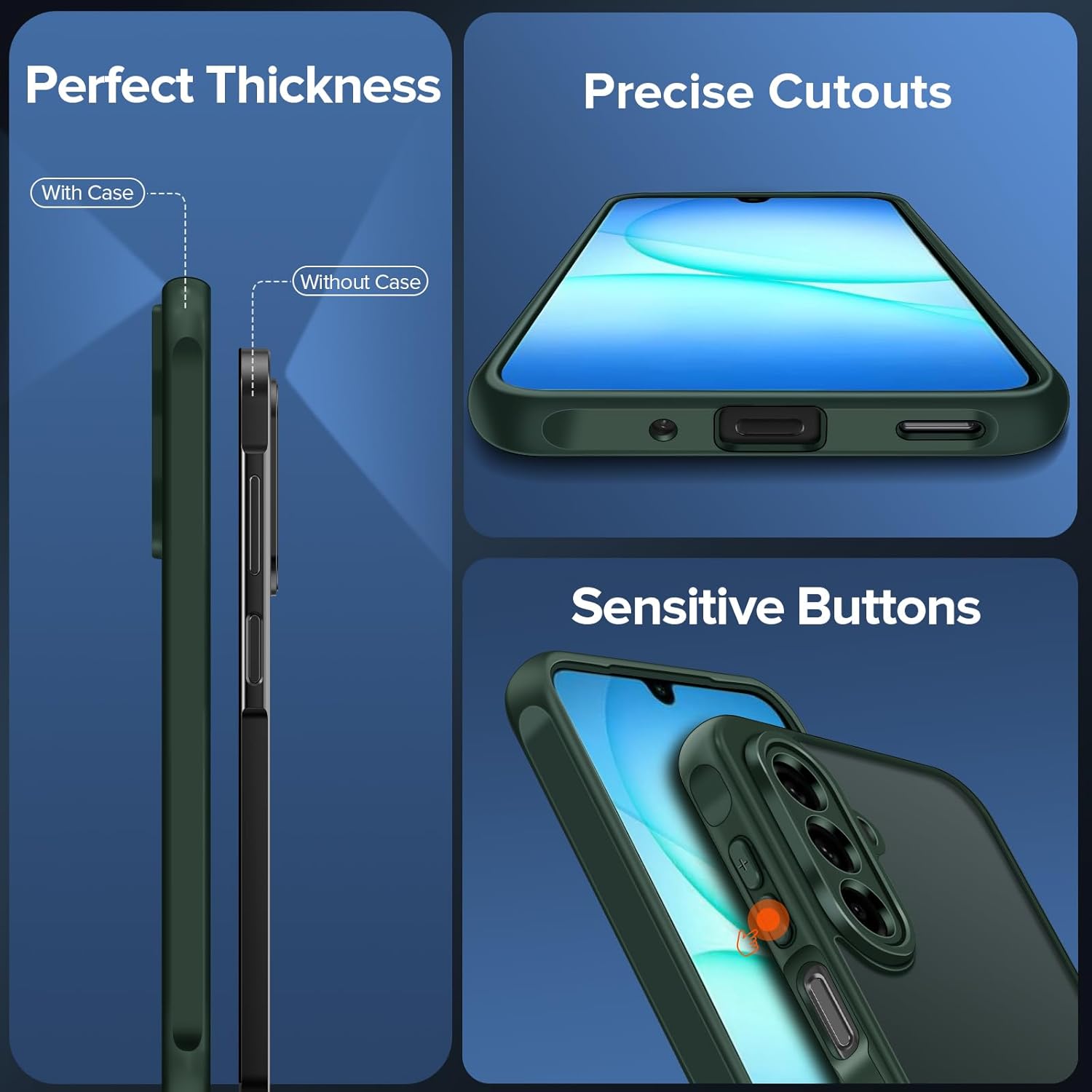 • 【Прецизни изрези】Калъф за Samsung Galaxy A16 5G с прецизно изрязване, лесен достъп до бутони, високоговорители, камери, интерфейс за зареждане, за да се осигури по-добра чувствителност. Простият и елегантен дизайн на калъфа предлага гладко, плътно прилягане до кожата и максимално дълготрайна производителност.