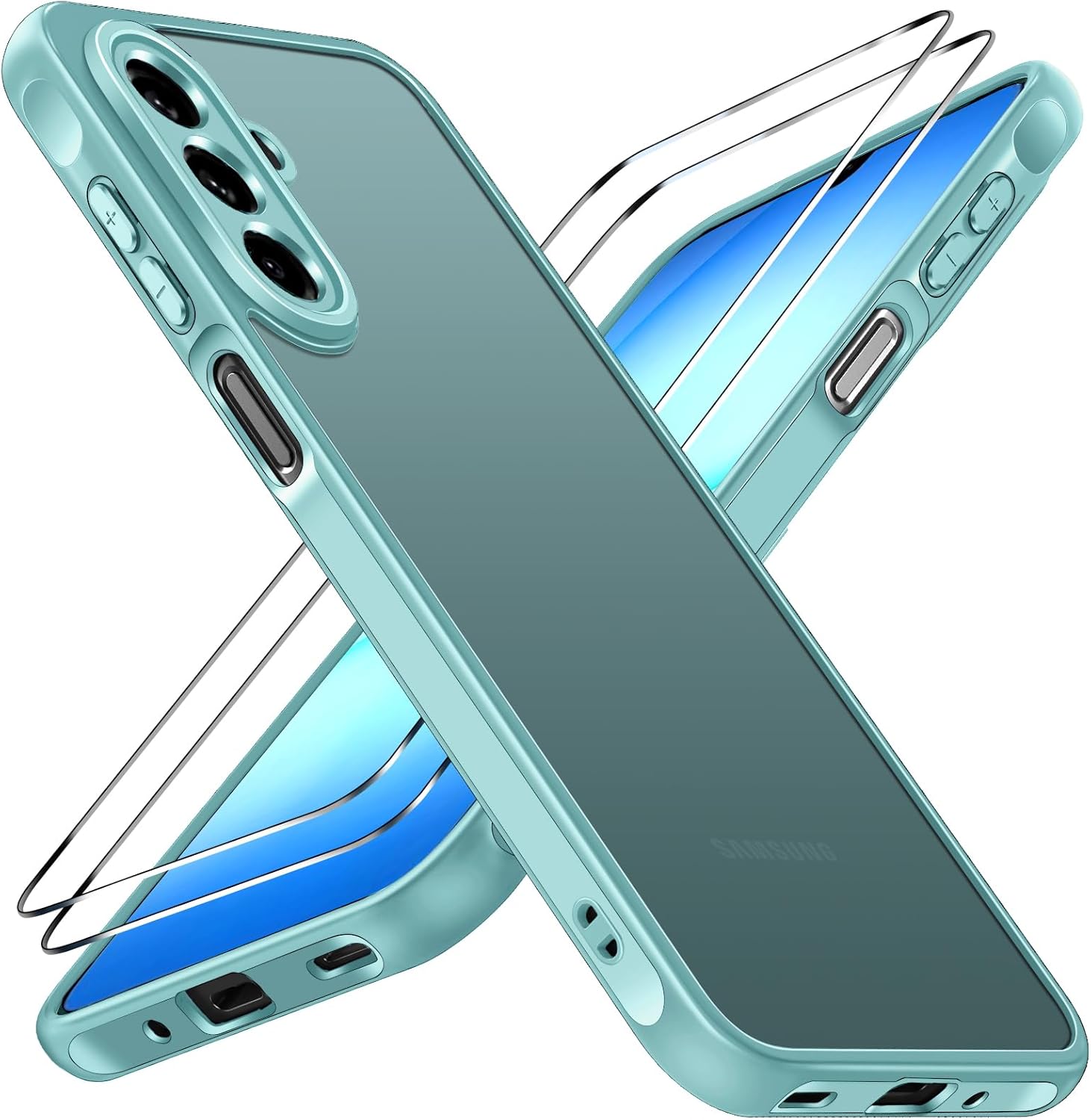 Кейс ivoler за Samsung Galaxy A17 4G / 5G с 2 части закалено стъкло, защитно стъкло, военен стандарт, удароустойчив, устойчив на надраскване, калъф за мобилен телефон, матов, прозрачен гръб, против пръстови отпечатъци