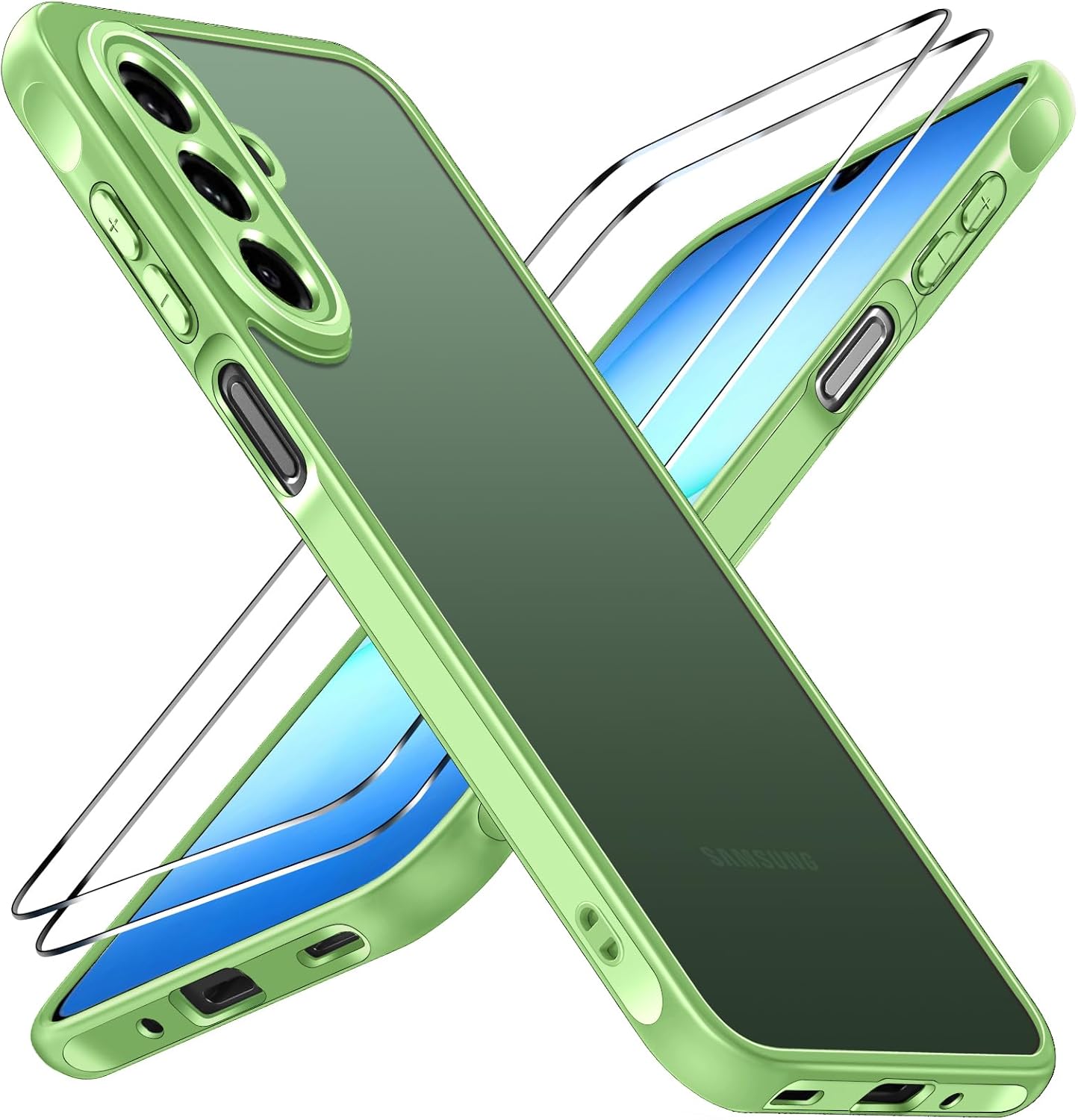 Кейс ivoler за Samsung Galaxy A17 4G / 5G с 2 части закалено стъкло, защитно стъкло, военен стандарт, удароустойчив, устойчив на надраскване, калъф за мобилен телефон, матов, прозрачен гръб, против пръстови отпечатъци