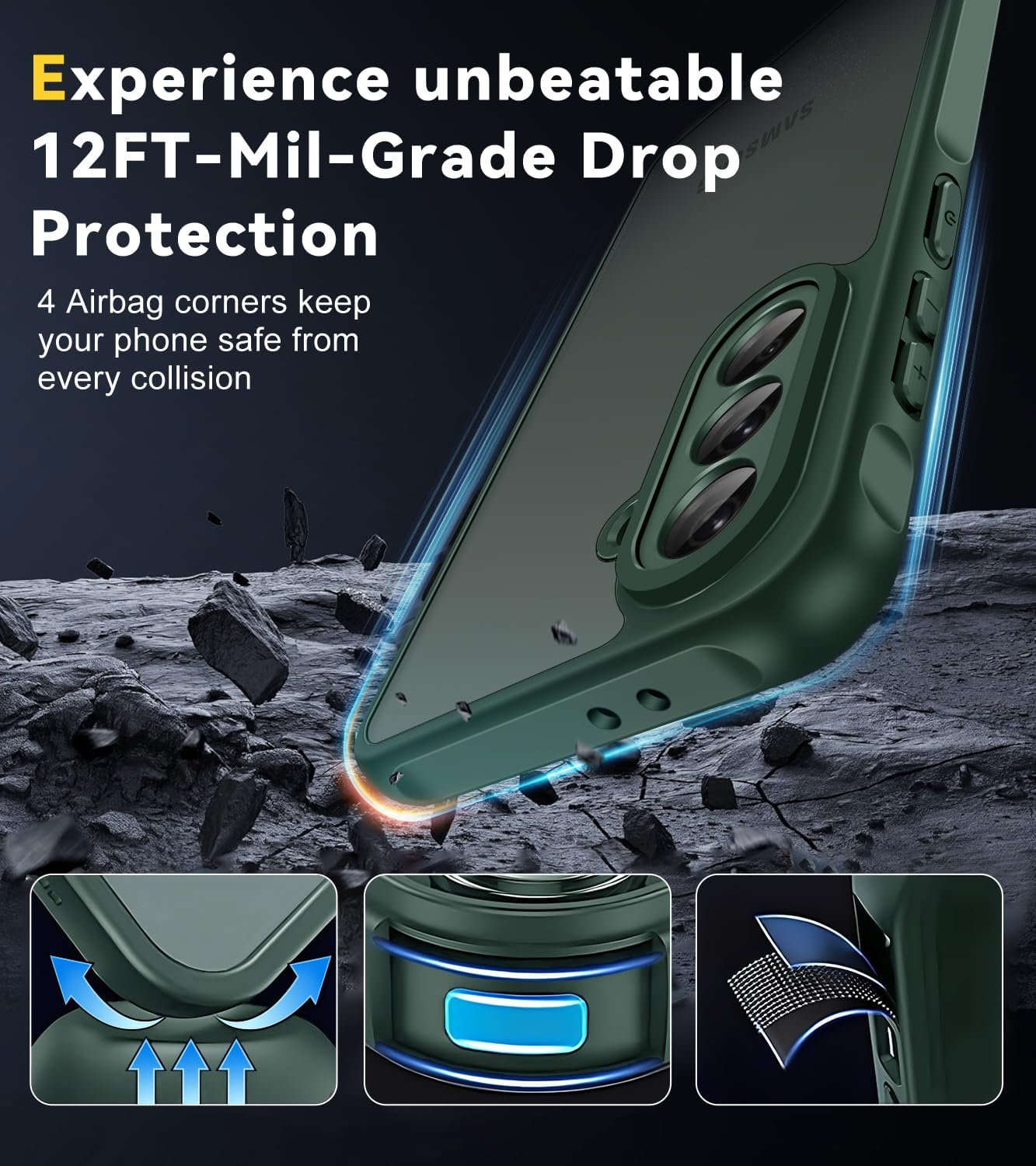 • 【Отлична защита от военно ниво】Твърдата PC задна плоча обгражда мека TPU броня с абсорбиращи ударите "въздушни възглавници" в 4 ъгъла, които могат ефективно да абсорбират и разпределят 99,99% от удара при падане. Тестван да издържа на реални ситуации, включително тестове за падане от множество ъгли от 3 метра и екстремни надрасквания. Така телефонът ви е защитен от скъпи и досадни ремонти.