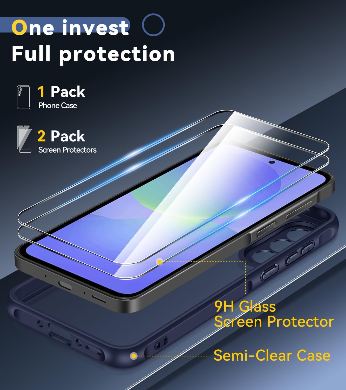 Кейс ivoler за Samsung Galaxy A36 5G с 2 части закалено стъкло [военен стандарт], удароустойчив [защита на камерата], калъф за мобилен телефон, матов прозрачен гръб, защита срещу пръстови отпечатъци