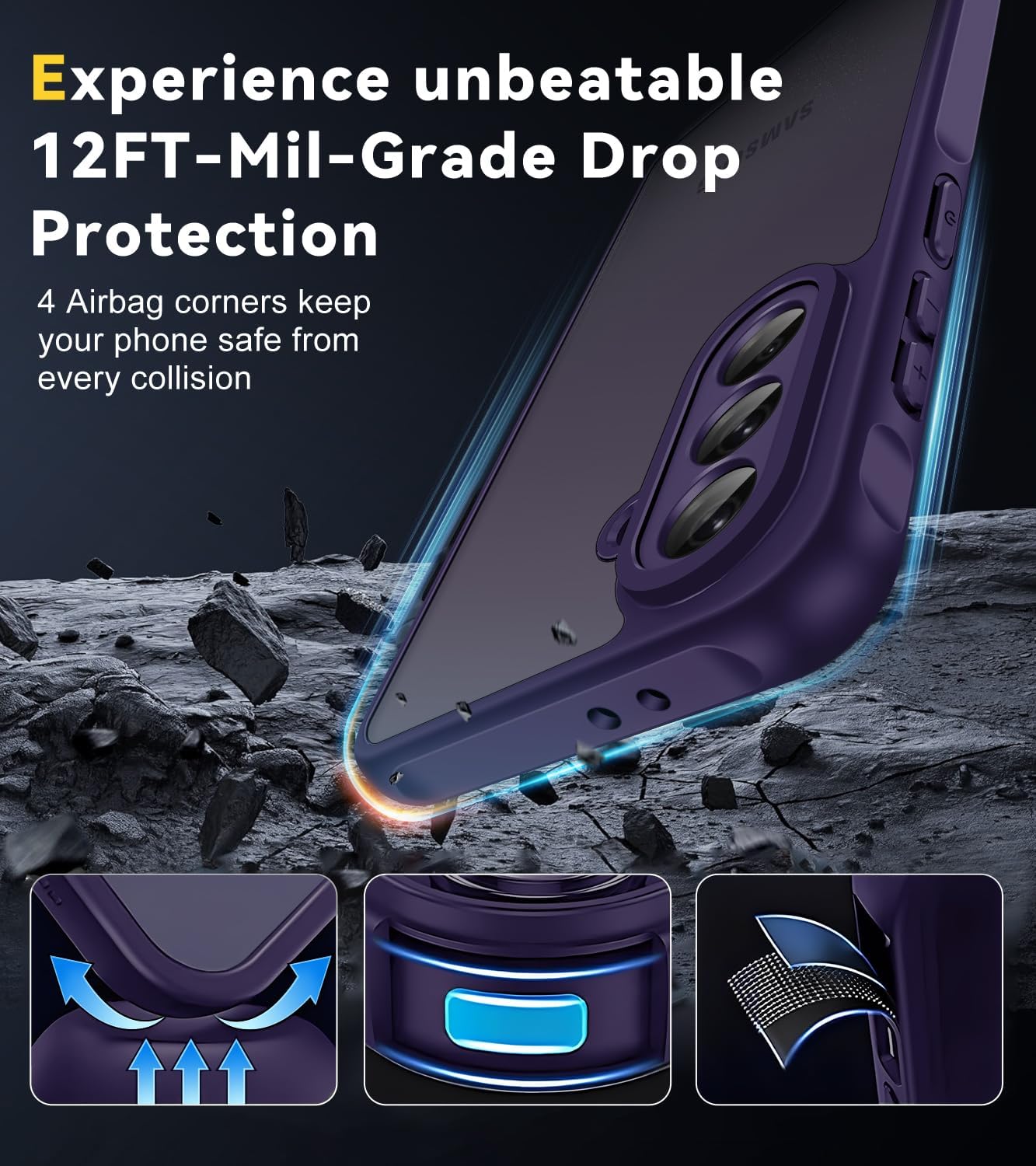 • 【Отлична защита от военно ниво】Твърдата PC задна плоча обгражда мека TPU броня с абсорбиращи ударите "въздушни възглавници" в 4 ъгъла, които могат ефективно да абсорбират и разпределят 99,99% от удара при падане. Тестван да издържа на реални ситуации, включително тестове за падане от множество ъгли от 3 метра и екстремни надрасквания. Така телефонът ви е защитен от скъпи и досадни ремонти.