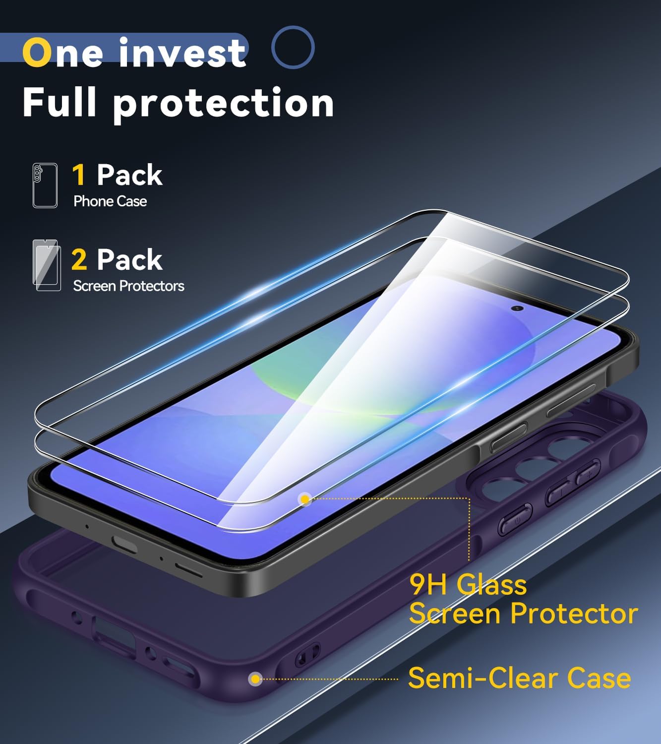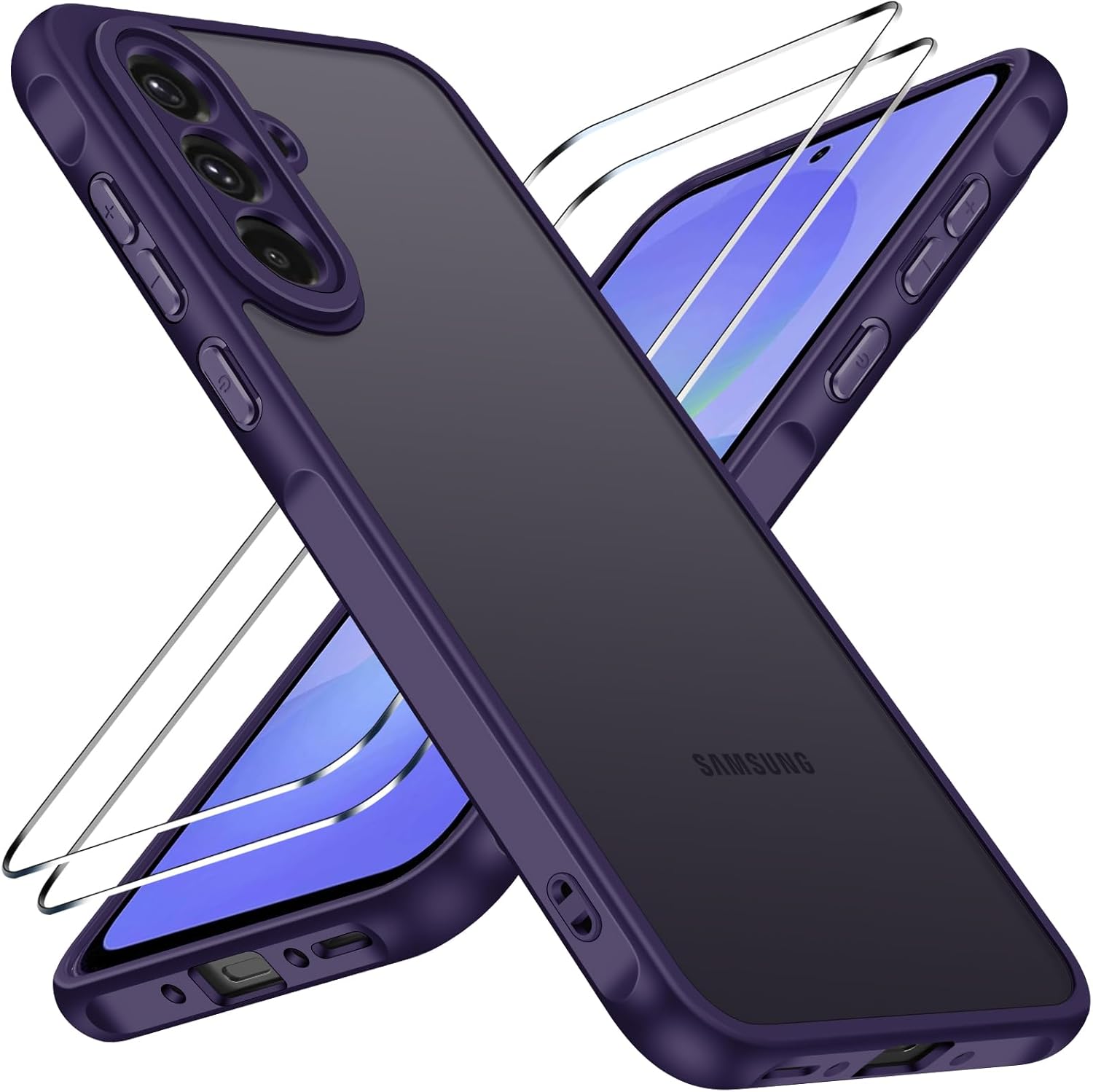 Кейс ivoler за Samsung Galaxy A36 5G с 2 части закалено стъкло за защита, [Военен стандарт] Удароустойчив [Защита на камерата] Калъф за мобилен телефон, Матов прозрачен гръб против пръстови отпечатъци