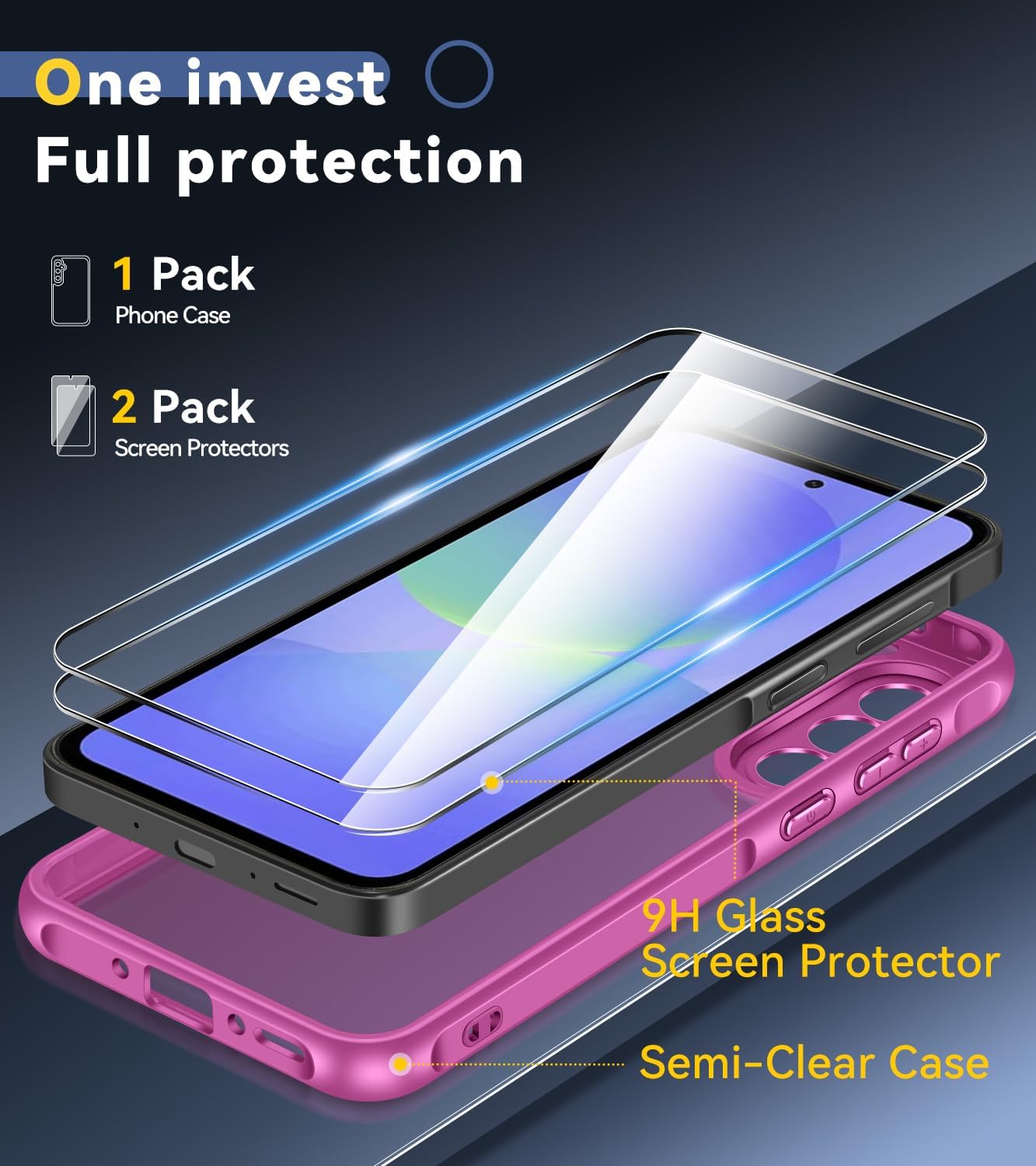 Кейс ivoler за Samsung Galaxy A36 5G с 2 части закалено стъкло за защита, [Военен стандарт] Удароустойчив [Защита на камерата] Калъф за мобилен телефон, Матов прозрачен гръб против пръстови отпечатъци