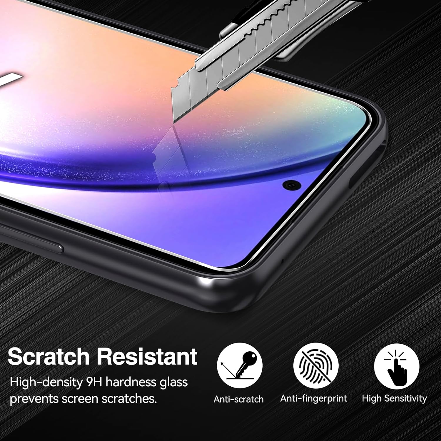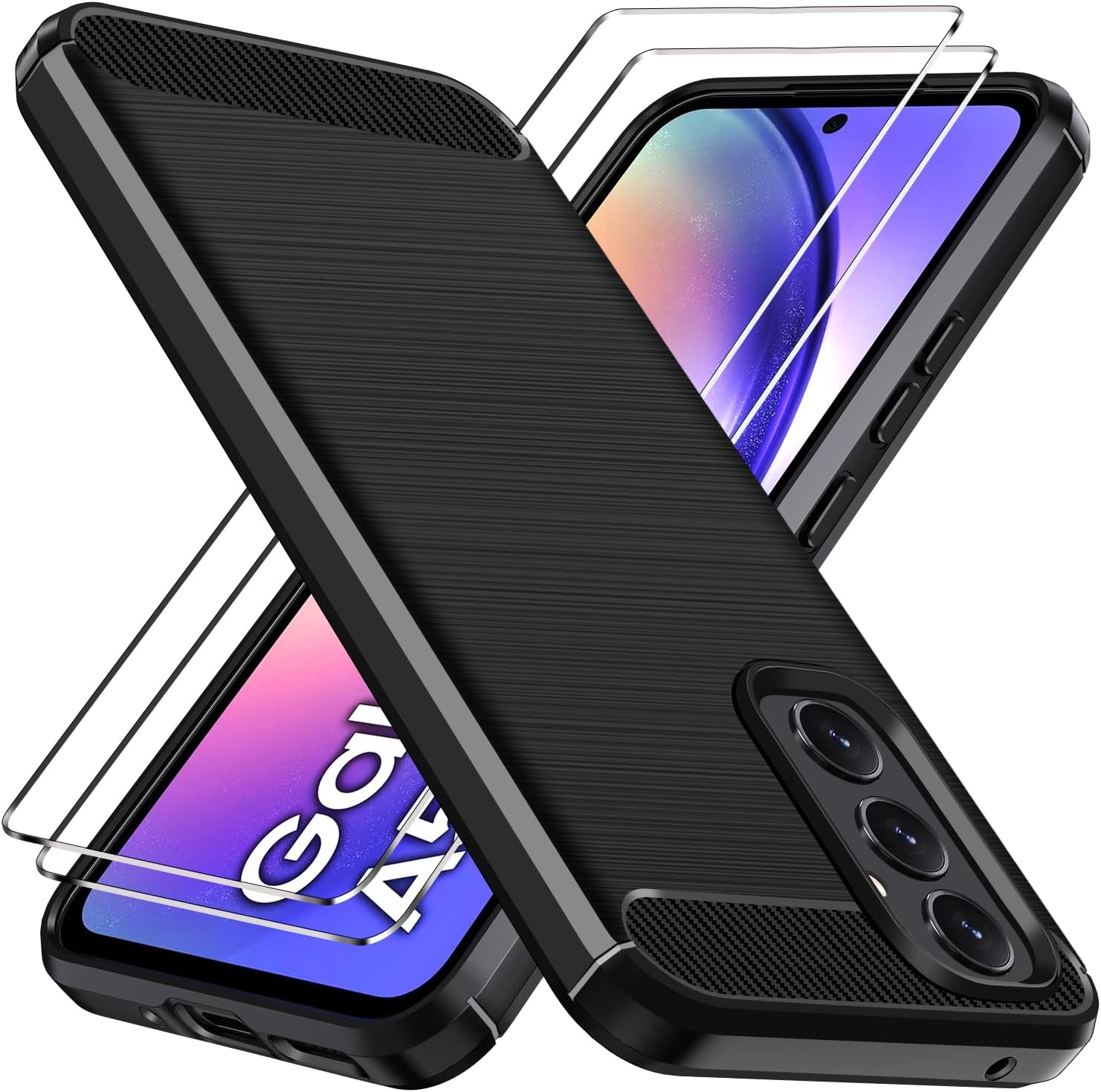 Кейс ivoler за Samsung Galaxy A54 5G с 2 части закалено стъкло, военен удароустойчив калъф за мобилен телефон, тънък мек TPU силиконов калъф, устойчив на надраскване, защитен калъф против пръстови отпечатъци, черен