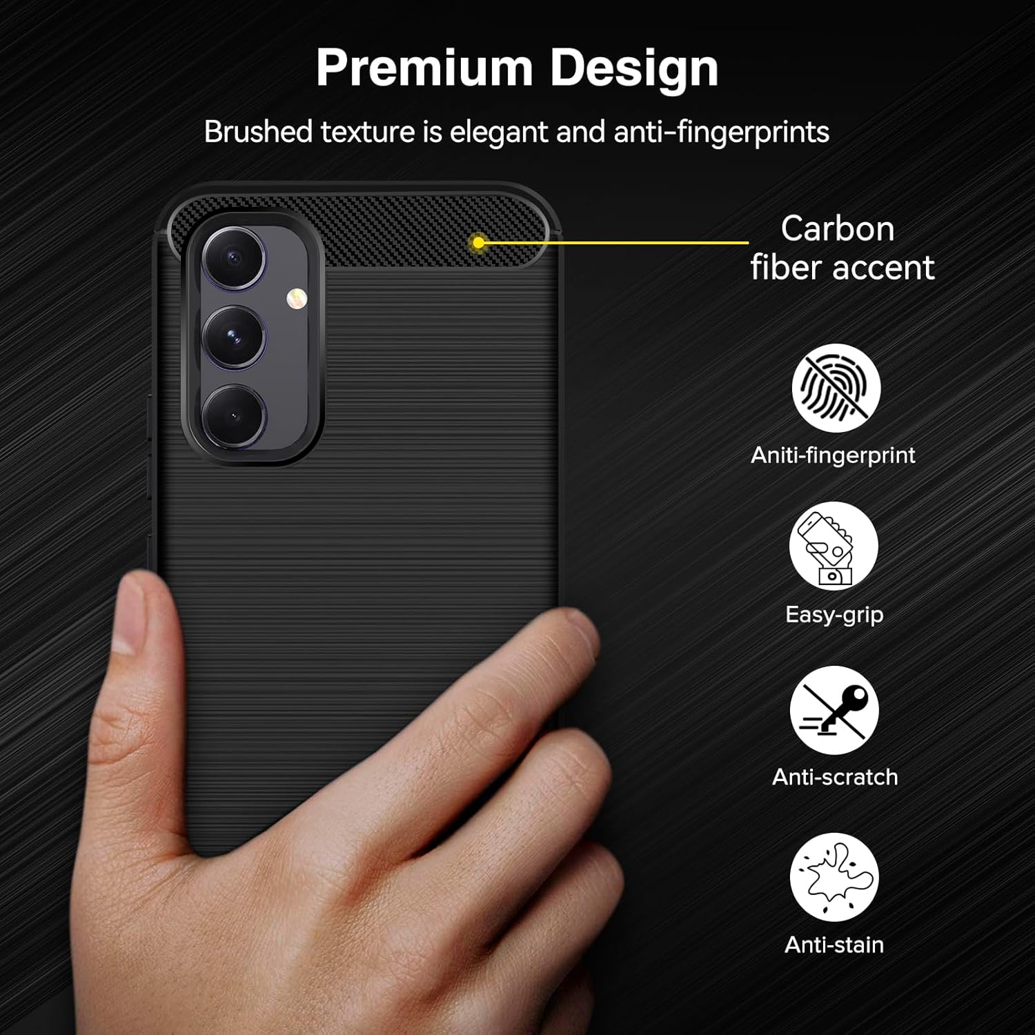 • 【Специален дизайн】Проектиран с текстура от въглеродни влакна и матирана противоплъзгаща повърхност, той е удобен в ръката ви и помага за намаляване на натрупването на пръстови отпечатъци или мазнини, предотвратява петна от вода, пръстови отпечатъци и размазване, за да поддържа калъфа на телефона ви чист и подреден. Също така увеличава сцеплението и предотвратява изплъзването на телефона ви от ръката ви. Лесен за поставяне и сваляне и е против надраскване на телефона, материалът не се поврежда лесно.