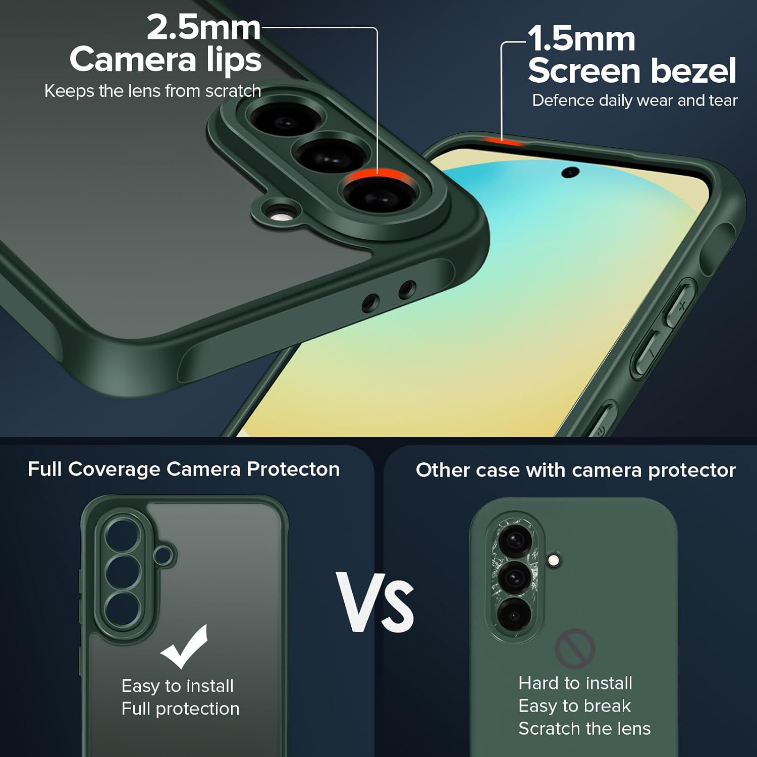 Кейс ivoler за Samsung Galaxy A56 5G с 2 части закалено стъкло [военен стандарт], удароустойчив [защита на камерата], калъф за мобилен телефон, матов прозрачен гръб, защита срещу пръстови отпечатъци