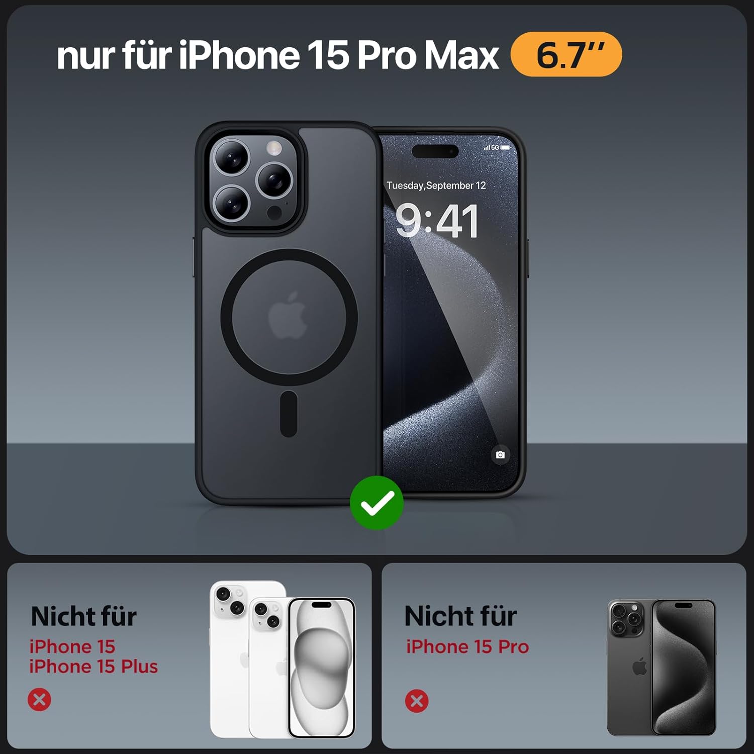 Кейс Miracase Magnetic Series за iPhone 15 Pro Max [Съвместим с MagSafe] [с 2 x протектора за екран] Военна защита, против пръстови отпечатъци, тънък калъф за телефон за iPhone 15 Pro Max -