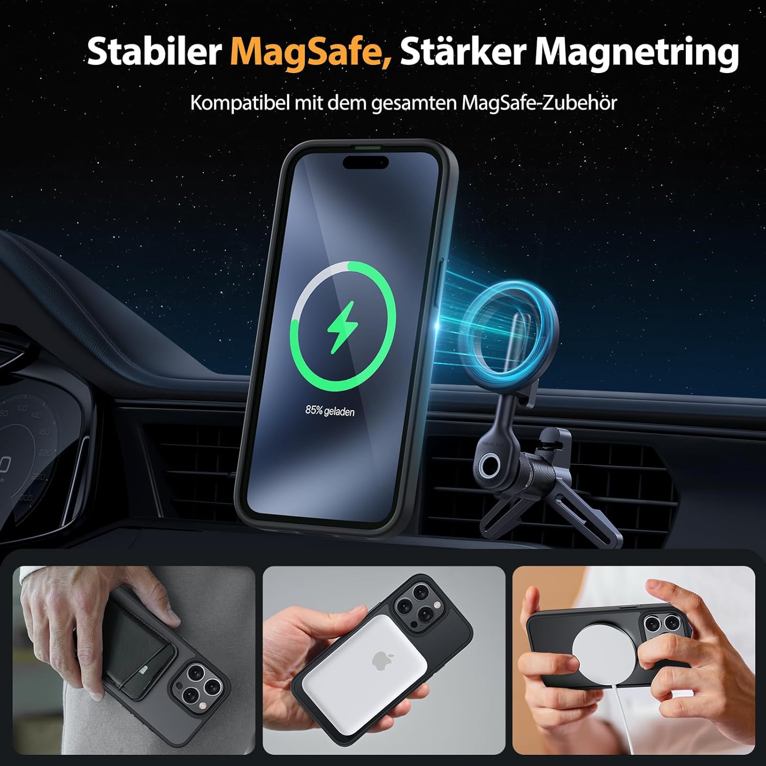 • Подобрена съвместимост с MagSafe: Специално проектиран калъф за iPhone 17 (6,3 инча): Интегрирана магнитна система 38 × N56+ с иновативен фокусен пръстен – 55% по-силно залепване от стандартните калъфи. Безпроблемно подравняване със зарядни устройства MagSafe за сигурно бързо зареждане от 25 W+, както и стабилно задържане на всички устройства MagSafe.