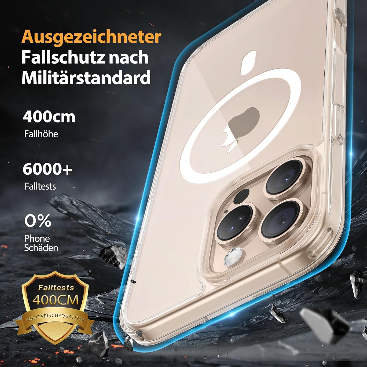 • Защита от падане от военен клас: Превишава военните стандарти MIL-STD-810G: Усъвършенствана технология за устойчивост на удари в четирите ъгъла, комбинирана с 360° въздушна възглавница отвътре и 3-слойна термопластична полиуретанова (TPU) подплата. Осигурява отлична защита срещу падания от височина до 4 метра – потвърдено от над 6500+ теста за падане в над 40 тестови среди.
