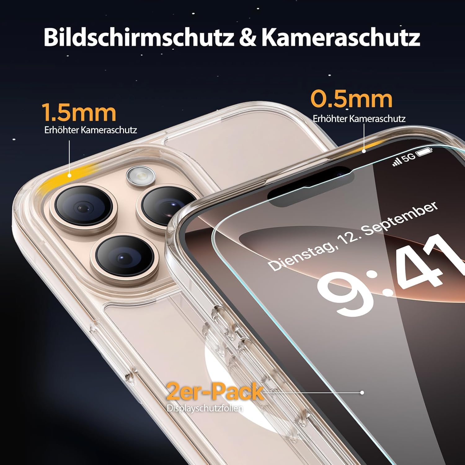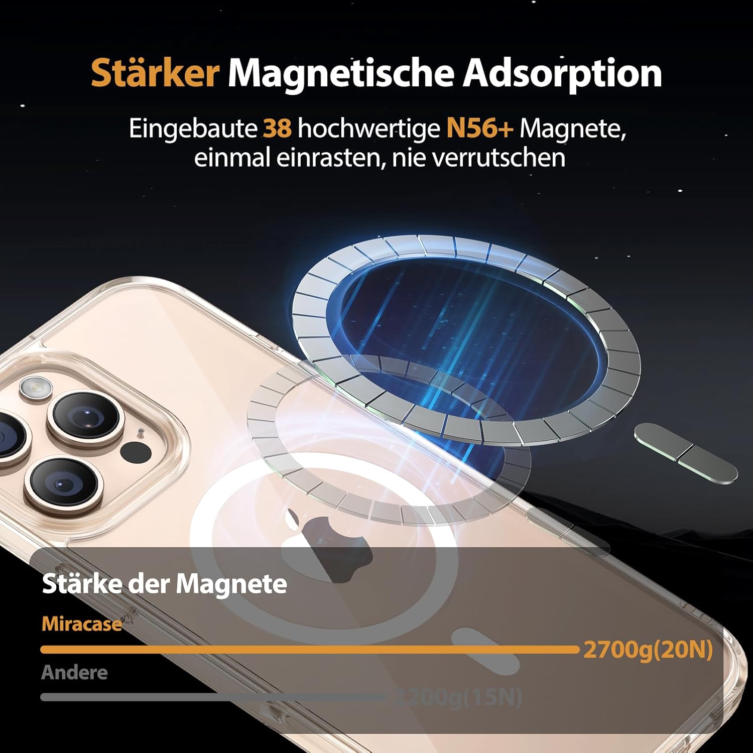 Кейс Miracase Magnetic за iPhone 16 Pro Max с Magsafe [с 2 защитни стъкла], военна защита, удароустойчив, устойчив на надраскване, против пръстови отпечатъци, тънък кадифен калъф за мобилен телефон за iPhone 16