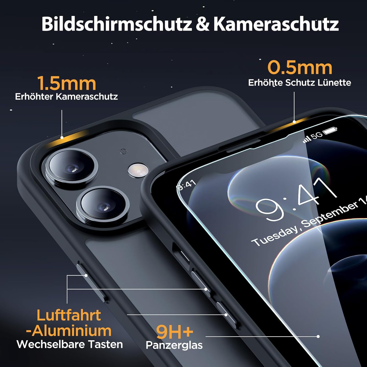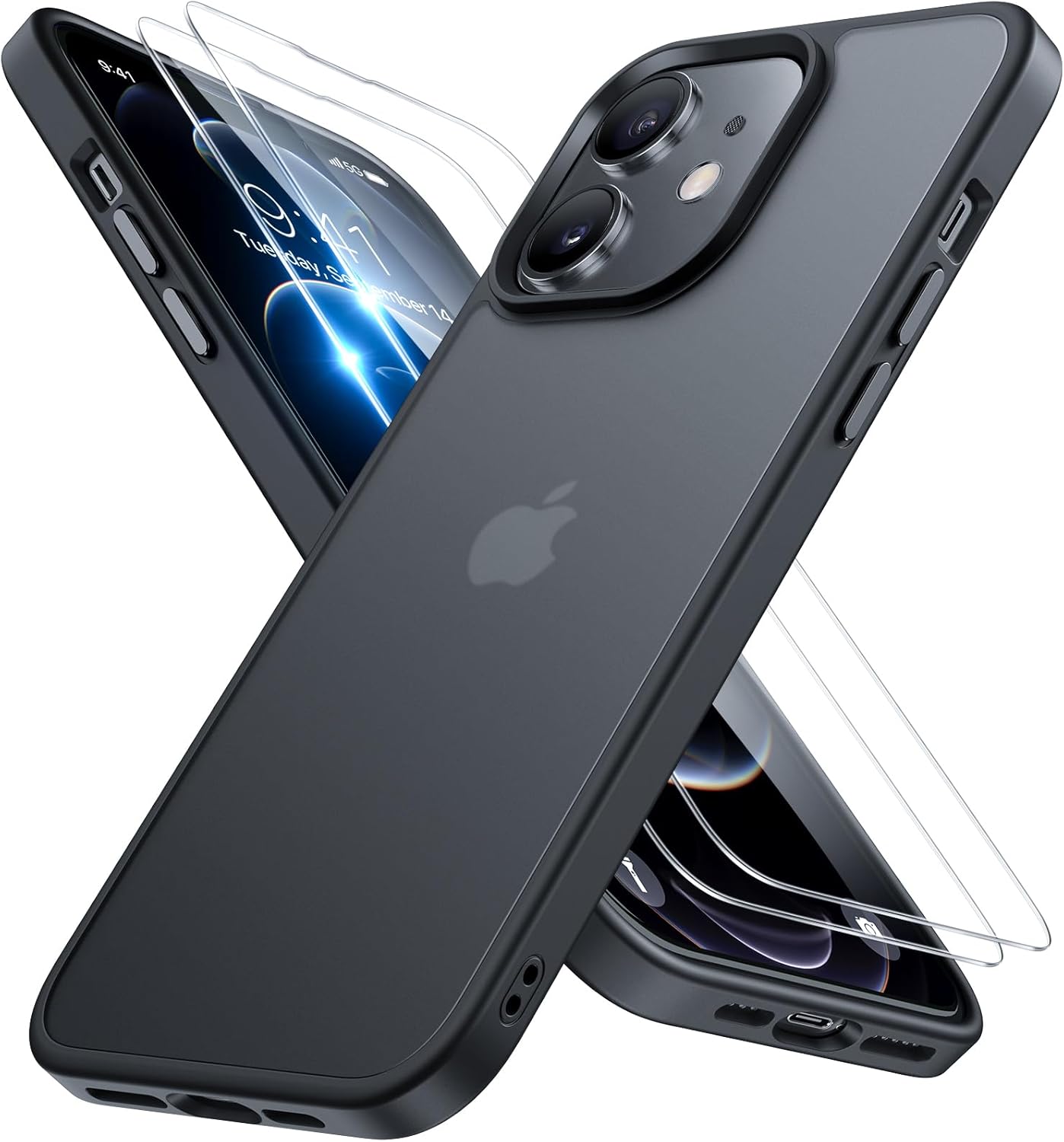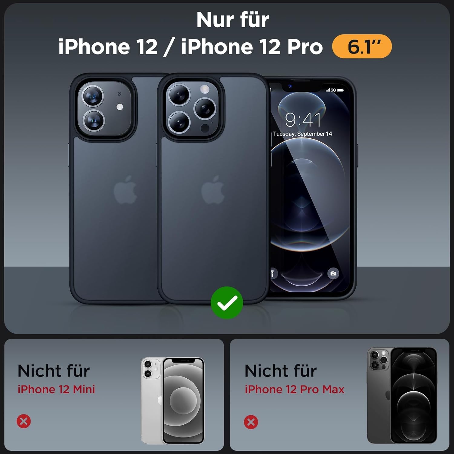 Кейс Miracase за iPhone 12/12 Pro [с 2 защитни стъкла] 360° въздушни възглавници, 3-слойна военна защита, удароустойчив, устойчив на надраскване, против пръстови отпечатъци, страхотен тънък калъф за мобилен телефон за iPhone 12/12