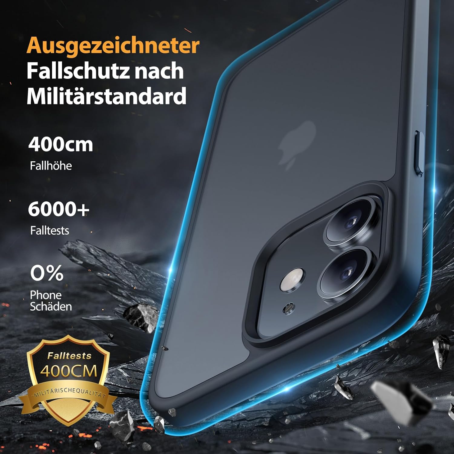 • Защита от падане от военен клас: Превишава военните стандарти MIL-STD-810G: Усъвършенствана технология за устойчивост на удари в четирите ъгъла, комбинирана с 360° въздушна възглавница отвътре и 3-слойна термопластична полиуретанова (TPU) подплата. Осигурява отлична защита срещу падания от височина до 4 метра – потвърдено от над 6500+ теста за падане в над 40 тестови среди.
