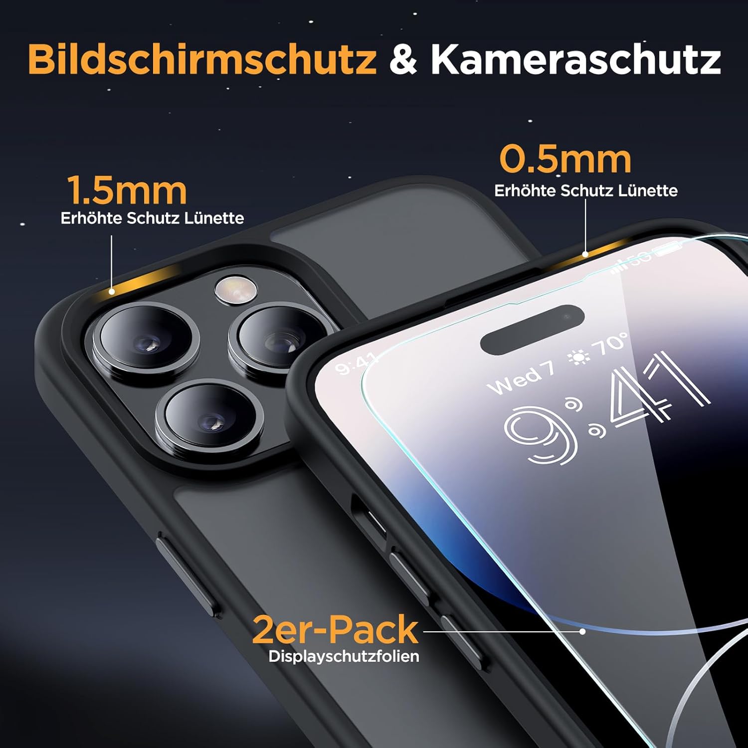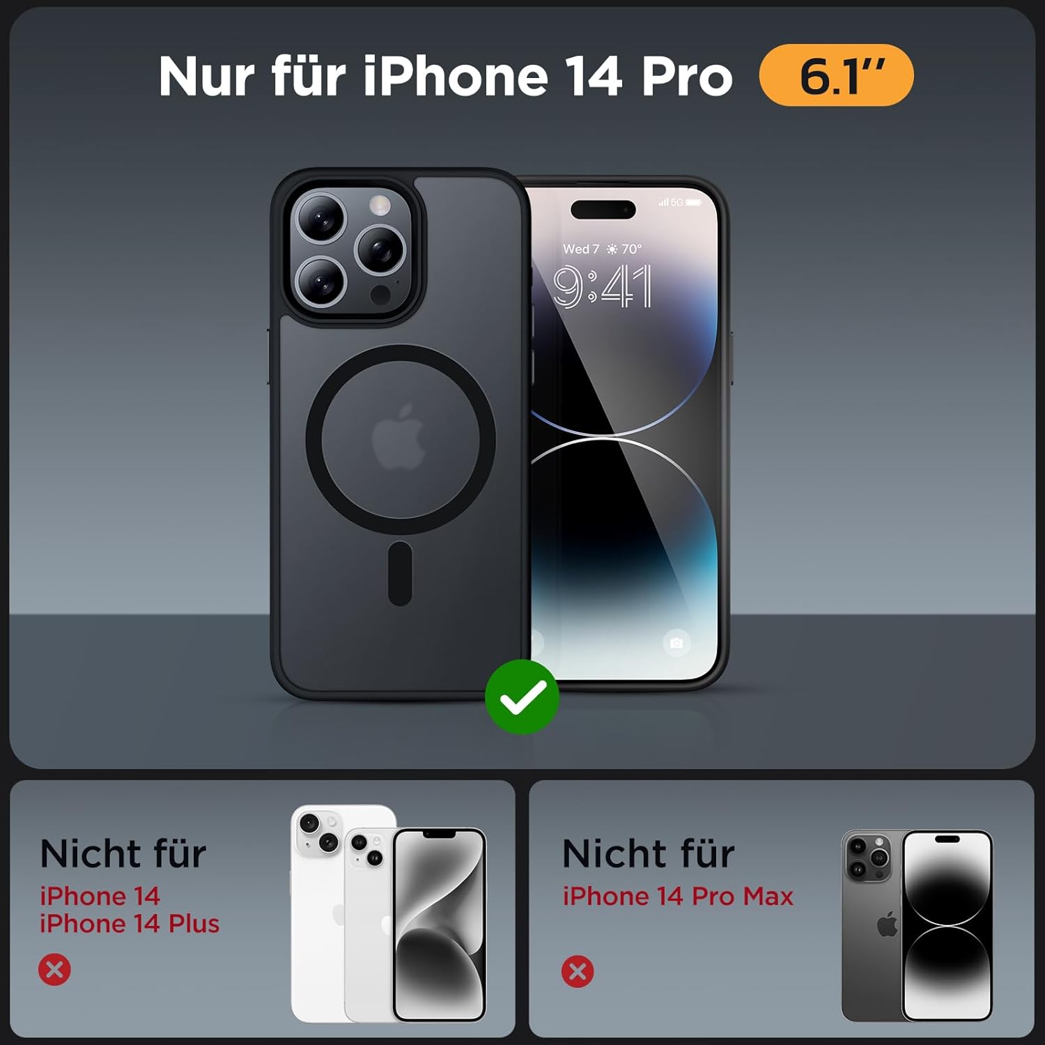 Кейс Miracase за iPhone 14 Pro с Magsafe [с 2 закалени стъкла] [Най-добра военна защита и магнитна сила] Удароустойчив, устойчив на надраскване, тънък кадифен калъф за мобилен телефон за iPhone 14 Pro 6.1