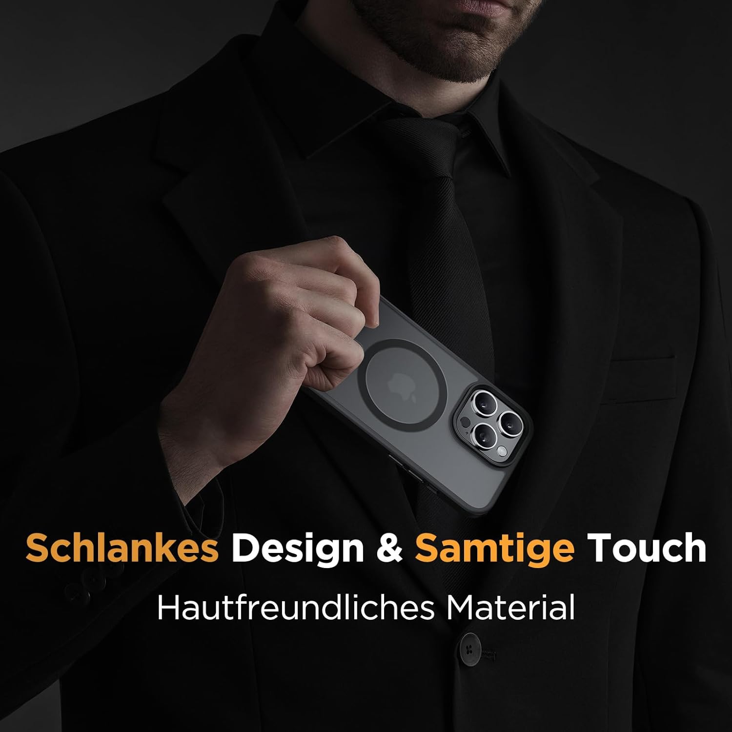 • Подобрена съвместимост с MagSafe: Специално проектиран калъф за iPhone 17 (6,3 инча): Интегрирана магнитна система 38 × N56+ с иновативен фокусен пръстен – 55% по-силно залепване от стандартните калъфи. Безпроблемно подравняване със зарядни устройства MagSafe за сигурно бързо зареждане от 25 W+, както и стабилно задържане на всички устройства MagSafe.