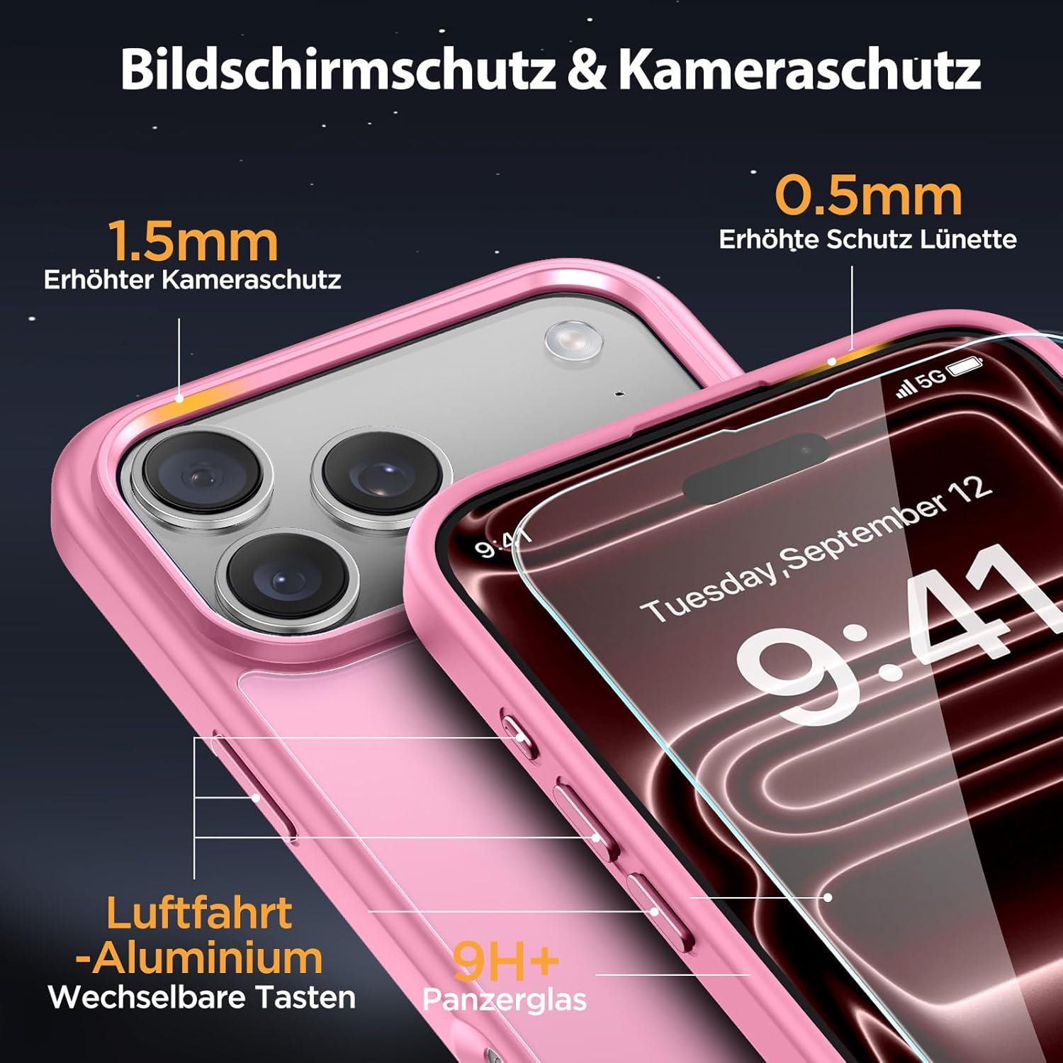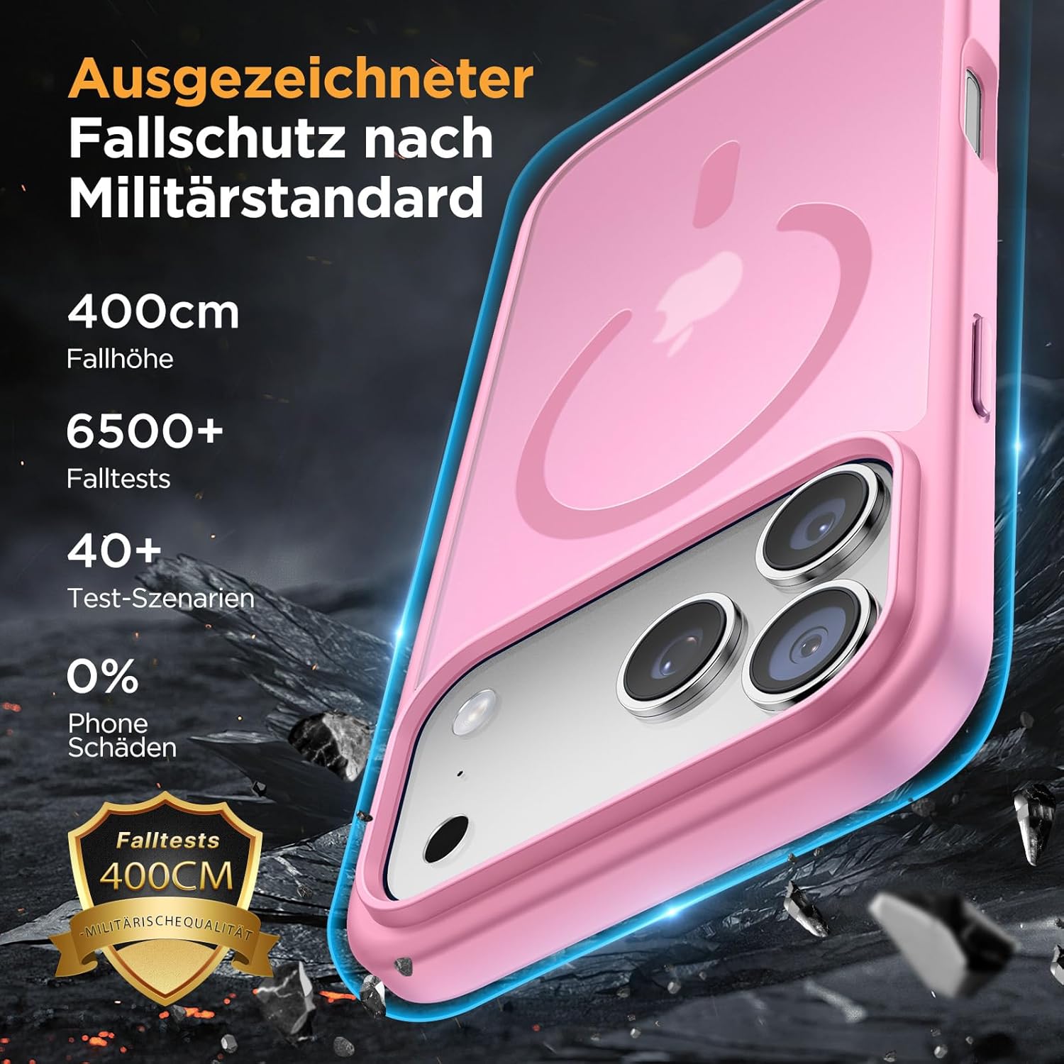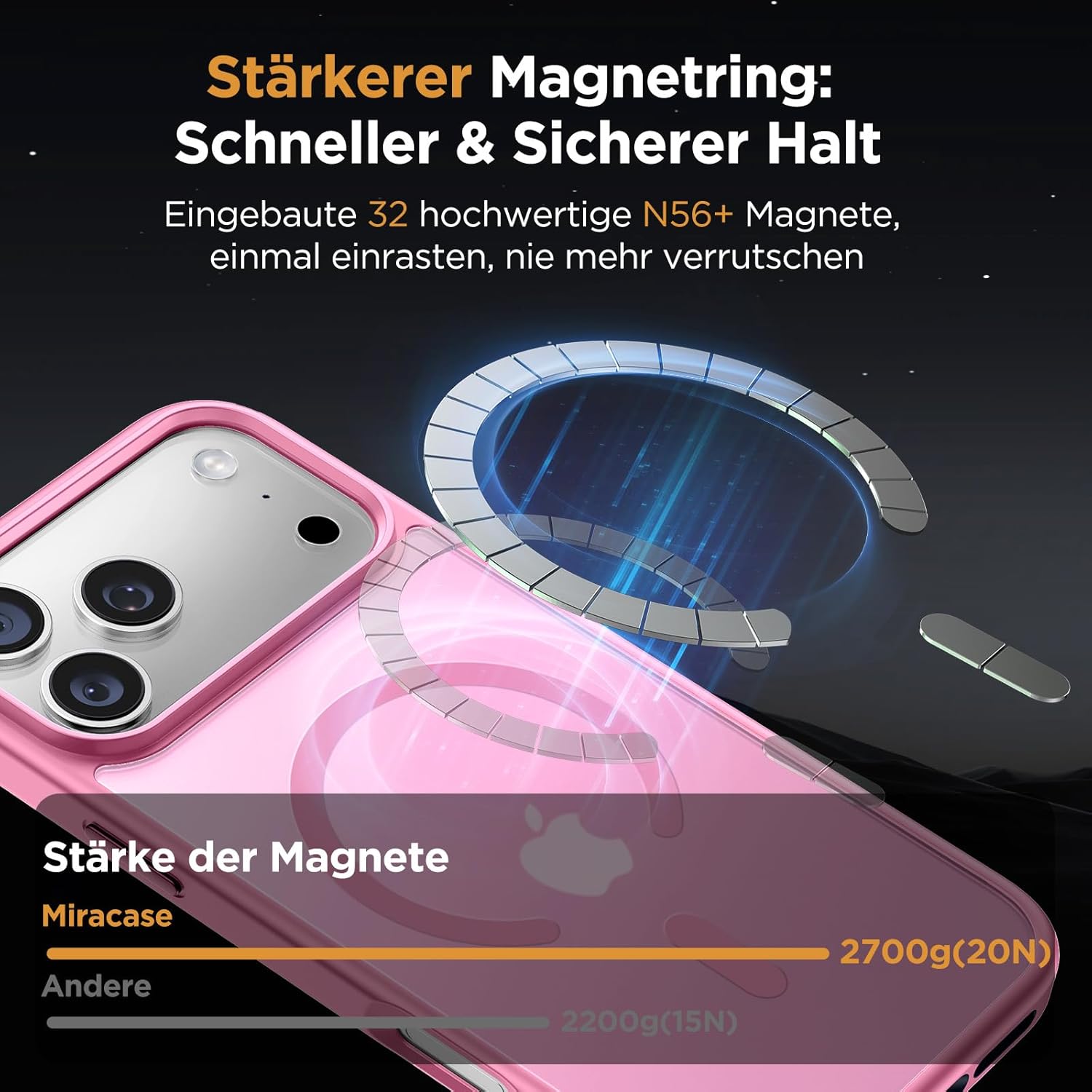 Кейс Miracase за iPhone 17 Pro с Magsafe [със закалено стъкло] [Най-висока военна защита и магнитна сила] Удароустойчив, устойчив на надраскване с кадифено усещане, калъф за мобилен телефон за iPhone 17 Pro 6.3 инча