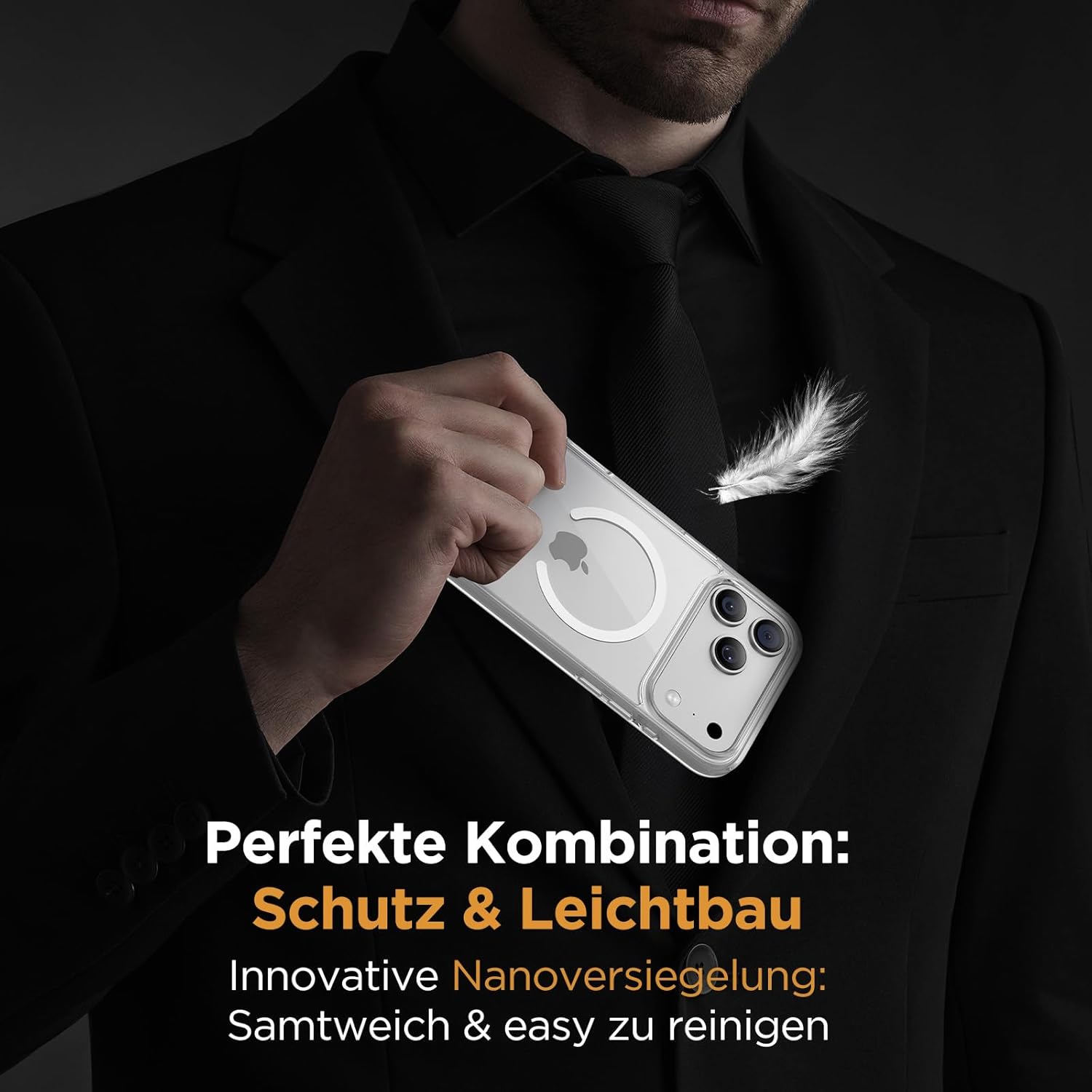 • Тънък дизайн и първокласно усещане: Този калъф за iPhone 17 съчетава тънкост и оптимална защита благодарение на удароустойчивата технология и ергономичния дизайн. Иновативното нанопокритие осигурява дълготрайна защита от надраскване и ефективно отблъсква пръстови отпечатъци – мекият предпазител осигурява копринено мек захват.