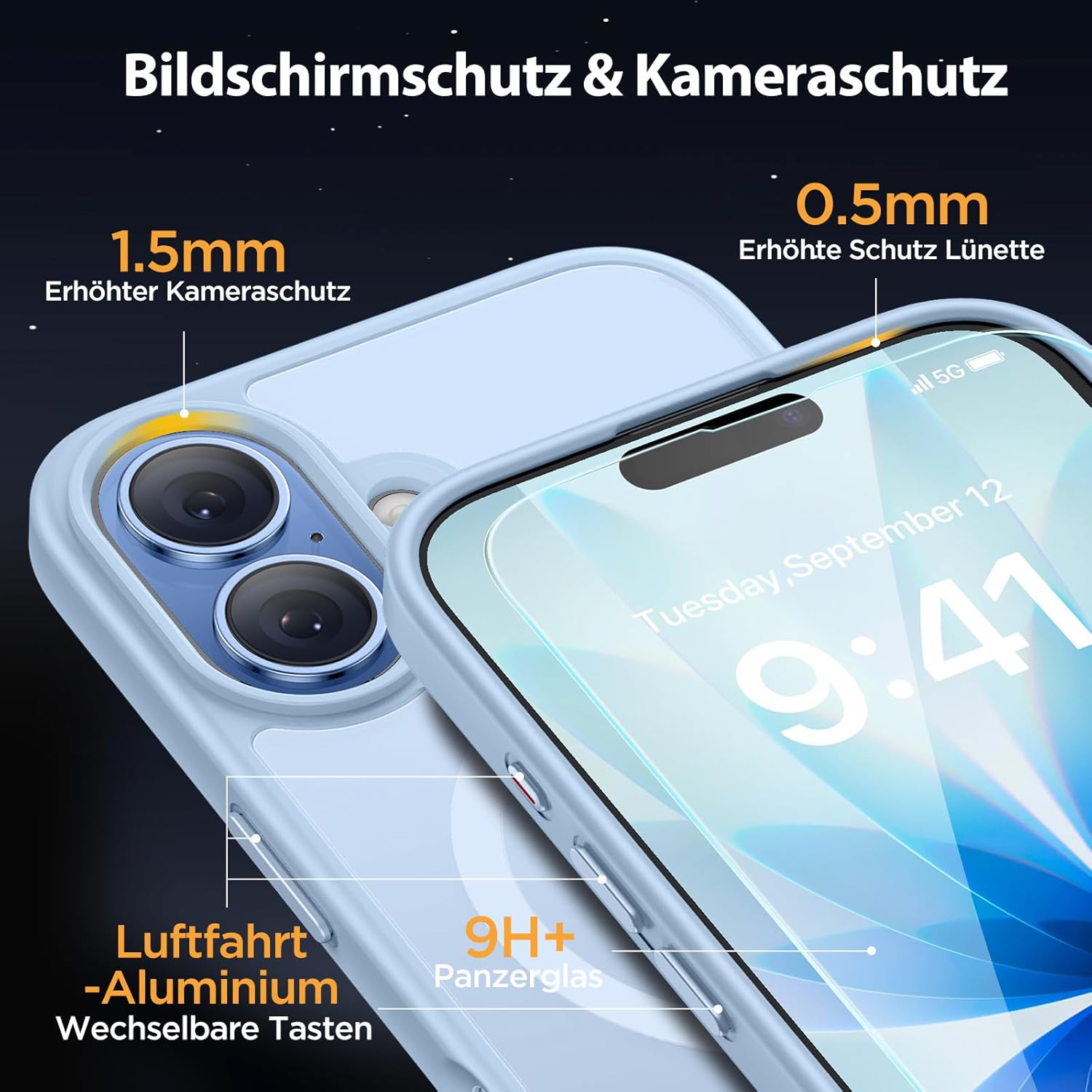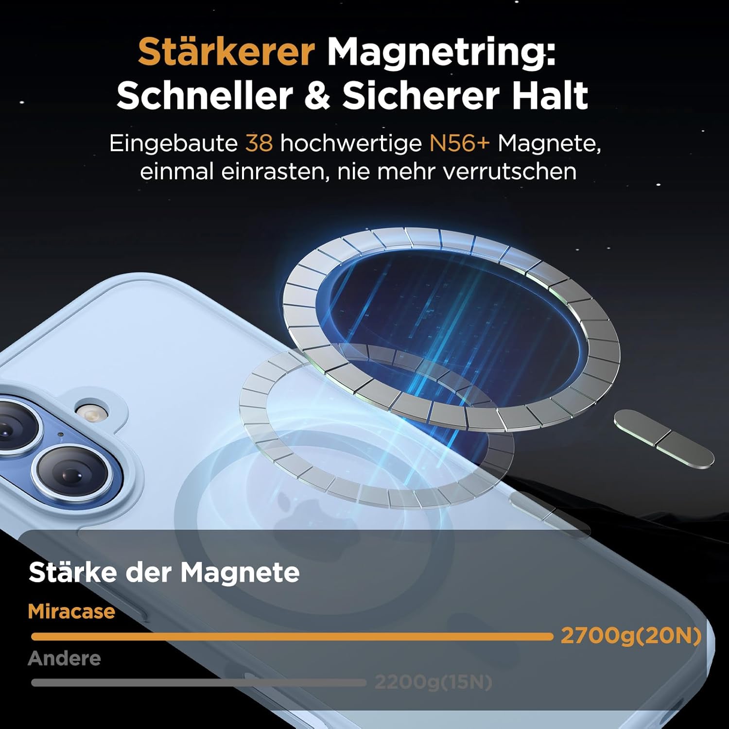 Кейс Miracase за iPhone 17 с Magsafe [със закалено стъкло] [Най-добра военна защита и магнитна сила] Удароустойчив, устойчив на надраскване с кадифено усещане, матов калъф за мобилен телефон за iPhone 17 6.3 инча