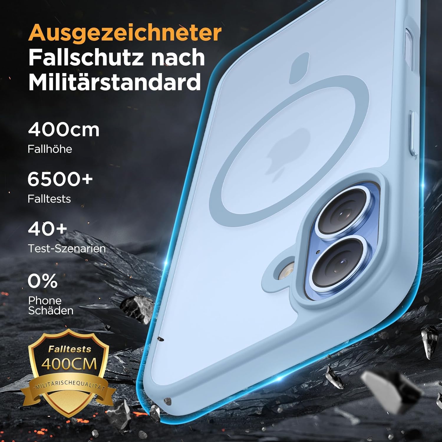 • Защита от падане от военен клас: Превишава военните стандарти MIL-STD-810G: Усъвършенствана технология за устойчивост на удари в четирите ъгъла, комбинирана с 360° въздушна възглавница отвътре и 3-слойна термопластична полиуретанова (TPU) подплата. Осигурява отлична защита срещу падания от височина до 4 метра – потвърдено от над 6500+ теста за падане в над 40 тестови среди.