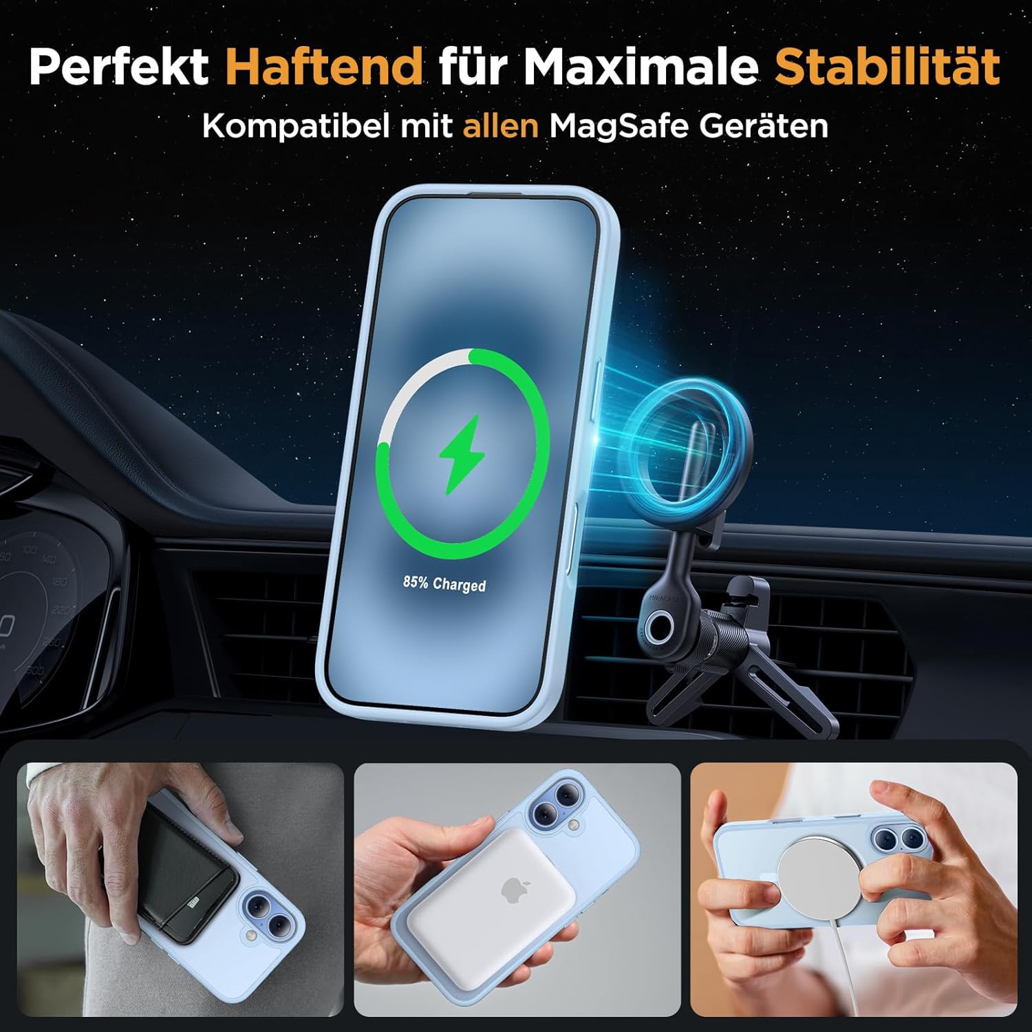 • Подобрена съвместимост с MagSafe: Специално проектиран калъф за iPhone 17 (6,3 инча): Интегрирана магнитна система 38 × N56+ с иновативен фокусен пръстен – 55% по-силно залепване от стандартните калъфи. Безпроблемно подравняване със зарядни устройства MagSafe за сигурно бързо зареждане от 25 W+, както и стабилно задържане на всички устройства MagSafe.
