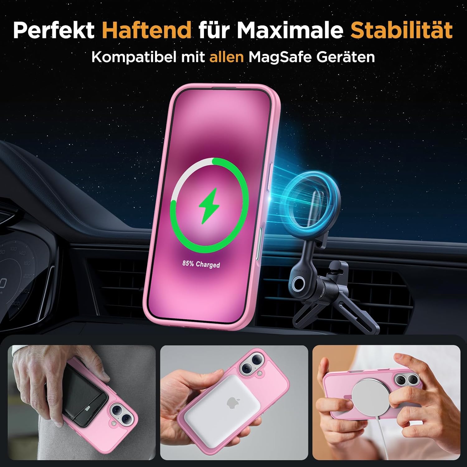 • Подобрена съвместимост с MagSafe: Специално проектиран калъф за iPhone 17 (6,3 инча): Интегрирана магнитна система 38 × N56+ с иновативен фокусен пръстен – 55% по-силно залепване от стандартните калъфи. Безпроблемно подравняване със зарядни устройства MagSafe за сигурно бързо зареждане от 25 W+, както и стабилно задържане на всички устройства MagSafe.