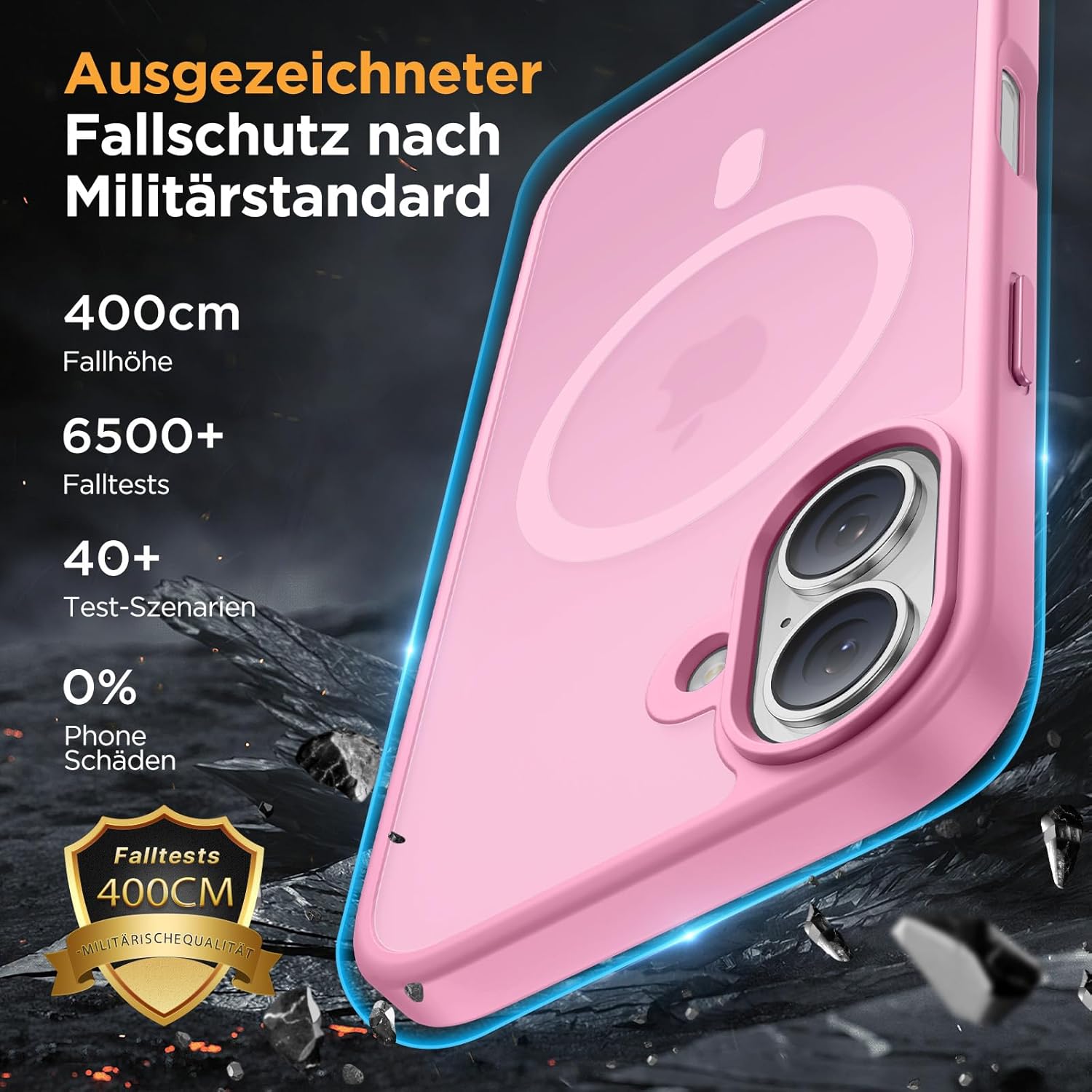 Кейс Miracase за iPhone 17 с Magsafe [със закалено стъкло] [Най-добра военна защита и магнитна сила] Удароустойчив, устойчив на надраскване с кадифено усещане, матов калъф за мобилен телефон за iPhone 17 6.3 инча
