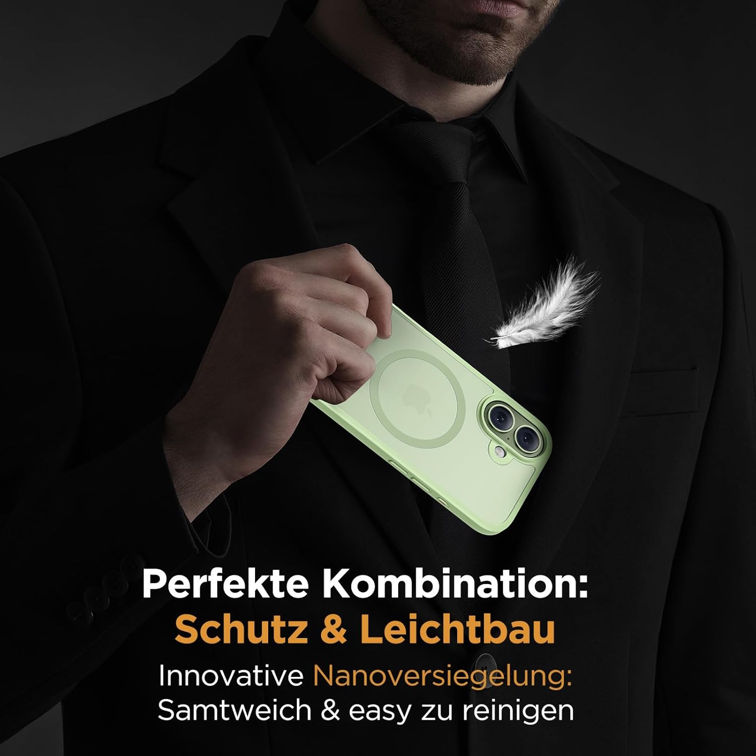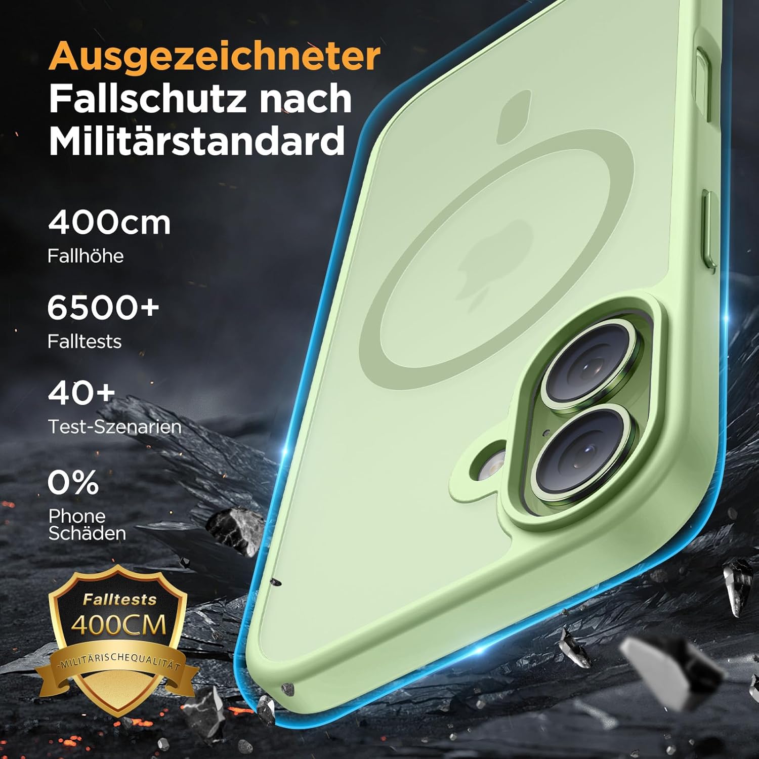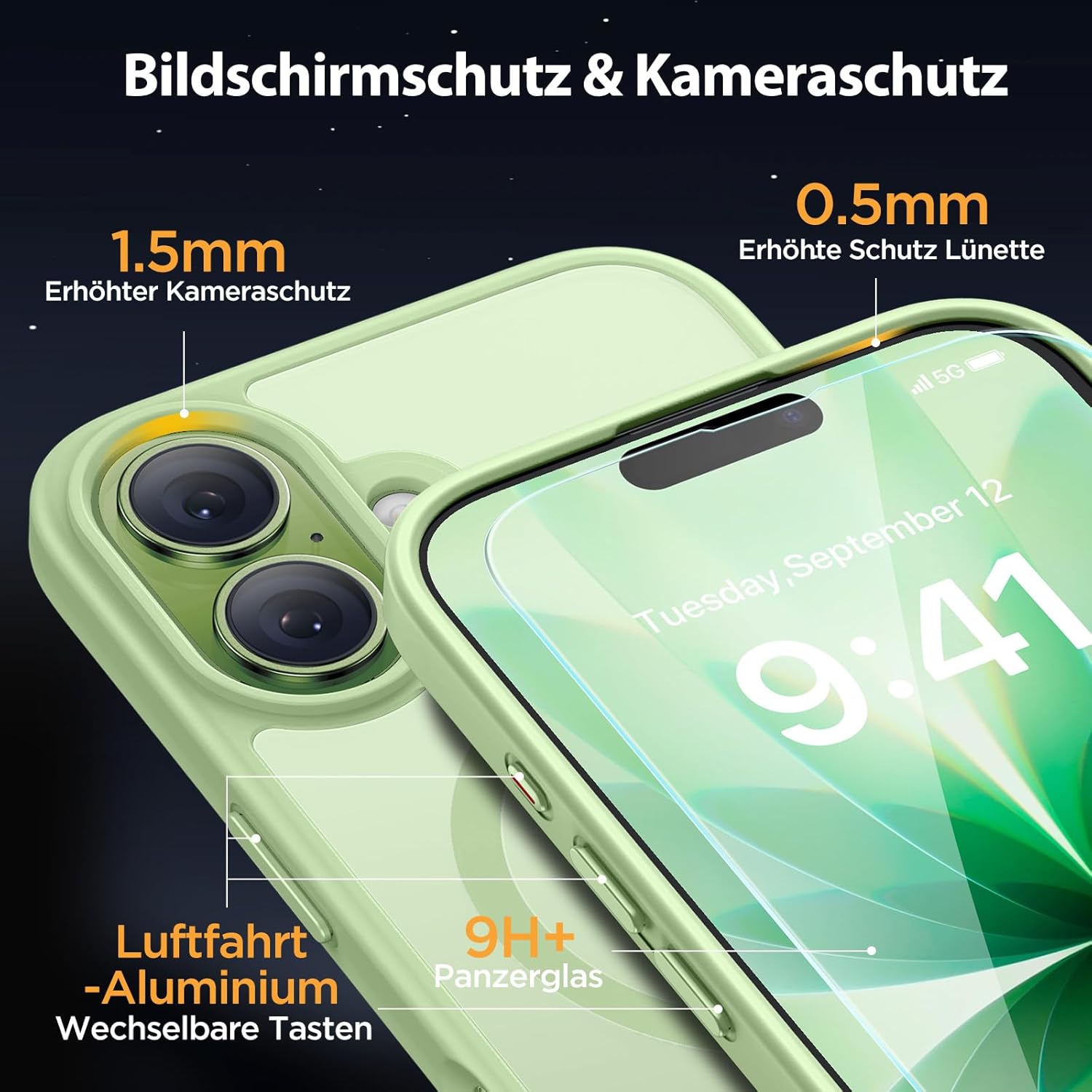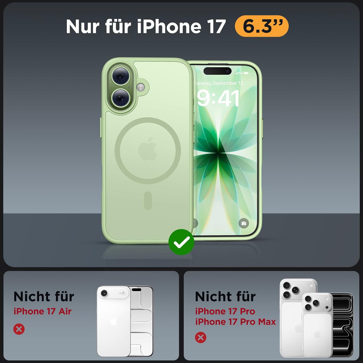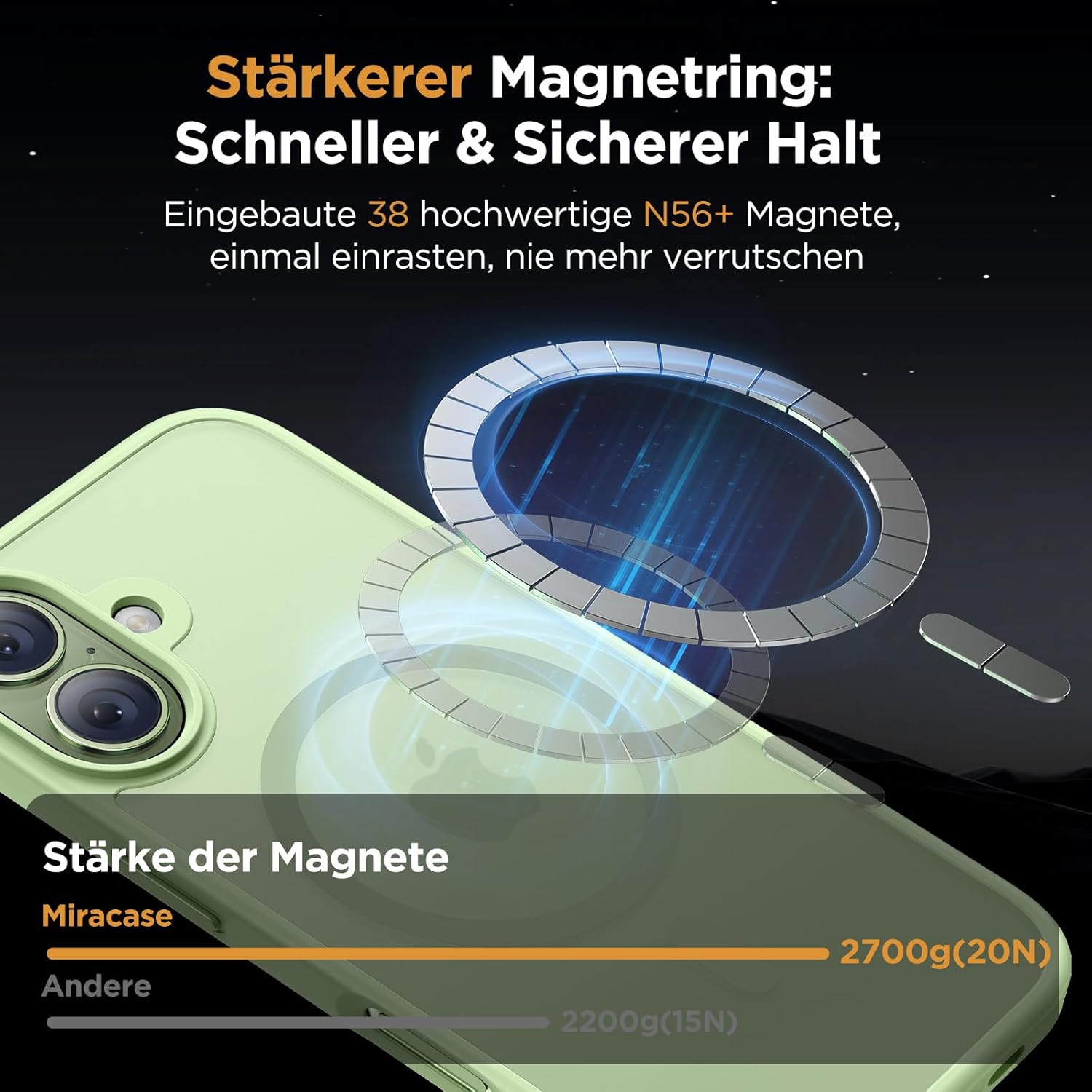 Кейс Miracase за iPhone 17 с Magsafe [със закалено стъкло] [Най-висока военна защита и магнитна сила] Удароустойчив, устойчив на надраскване с кадифено усещане, калъф за мобилен телефон за iPhone 17 6.3 инча, матов